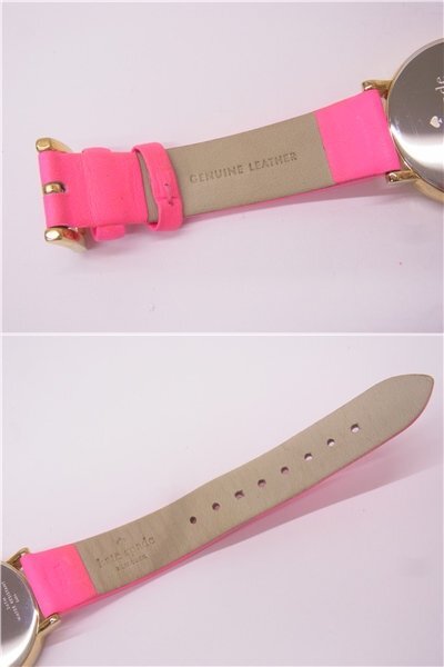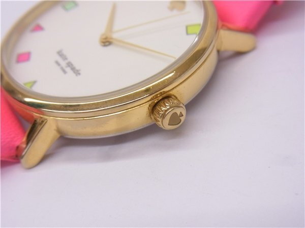 ◎ kate spade ◎ ケイトスペード LIVE COLORFULLY クォーツ時計 ゴールド×蛍光ピンク 白文字盤 電池交換済み 稼働品 ◎USED