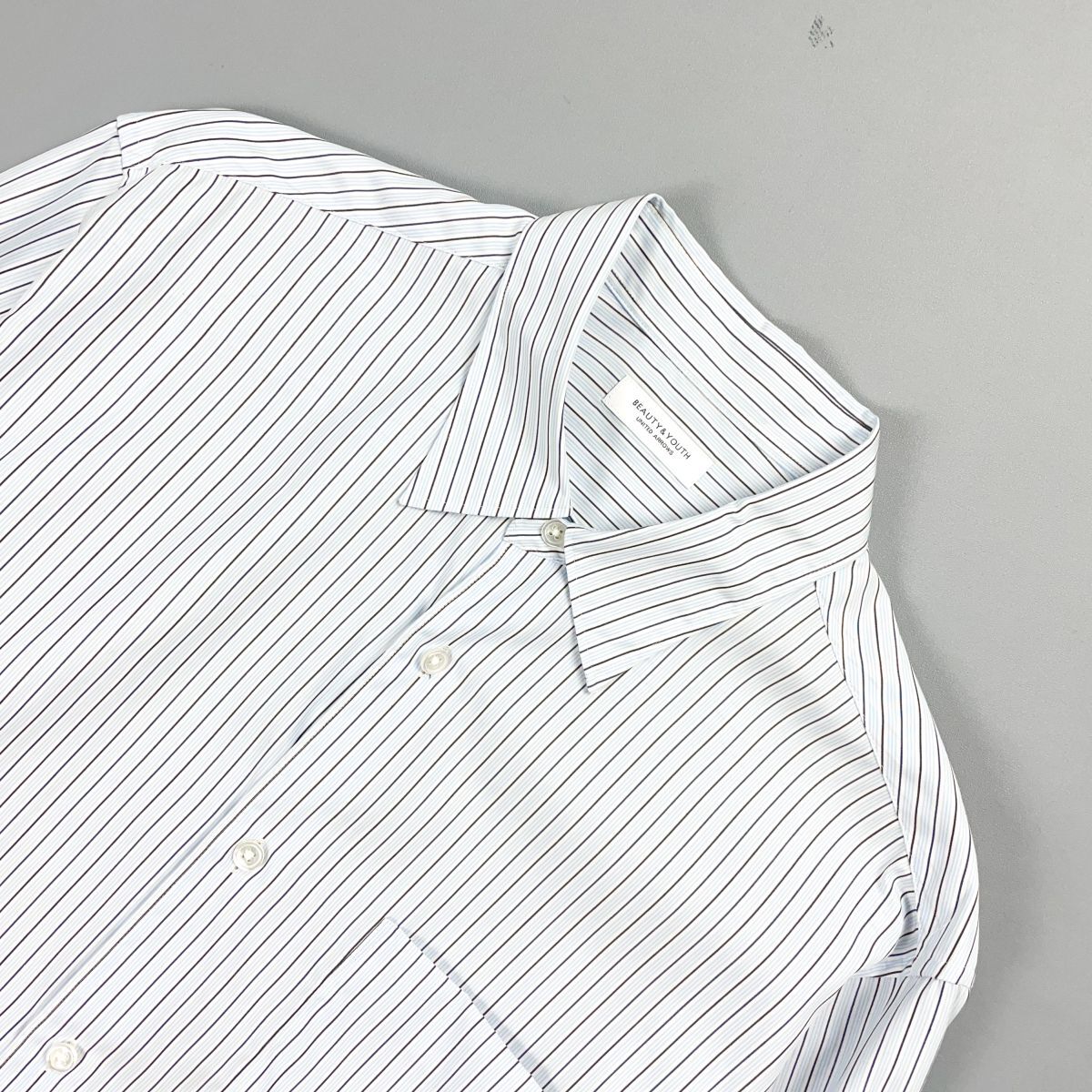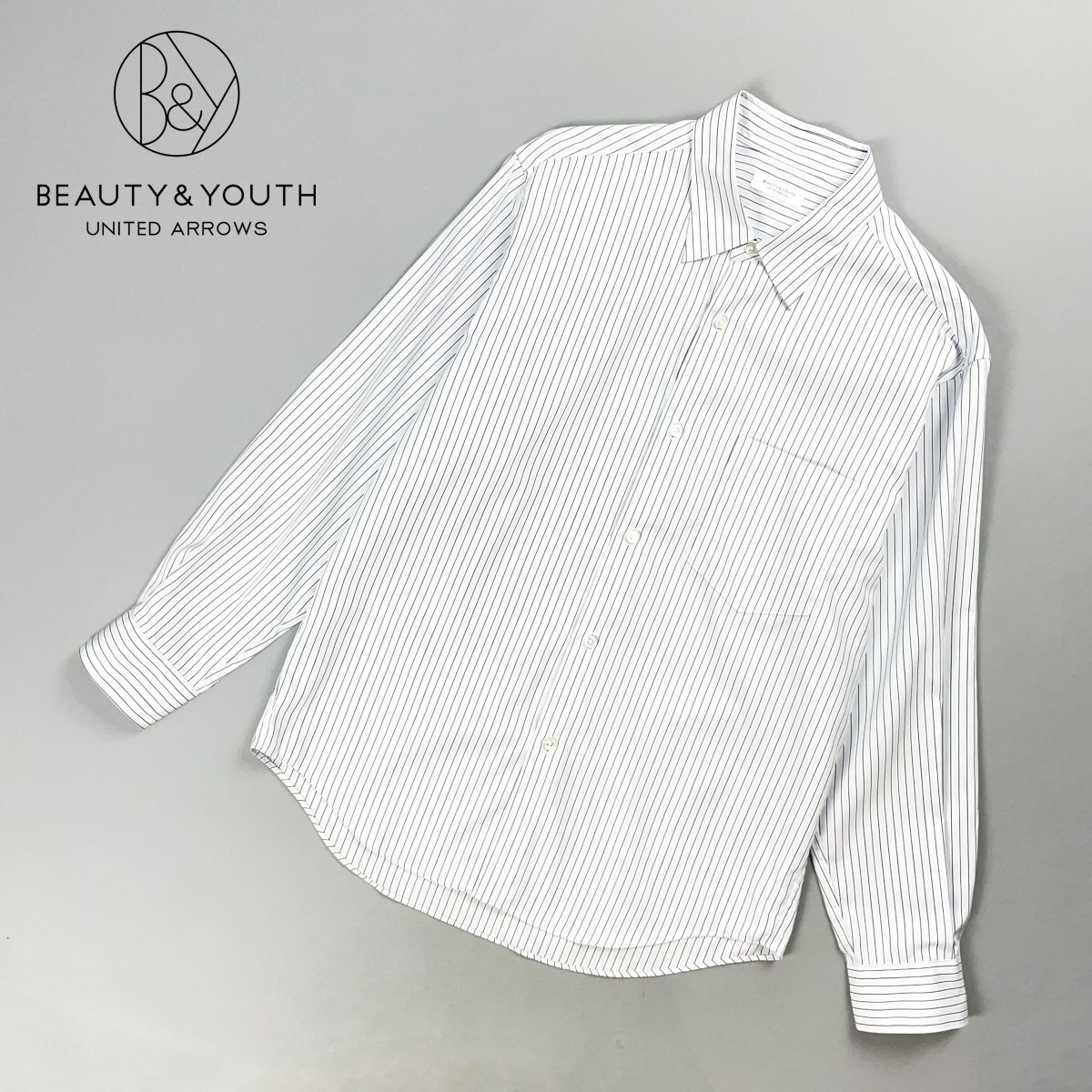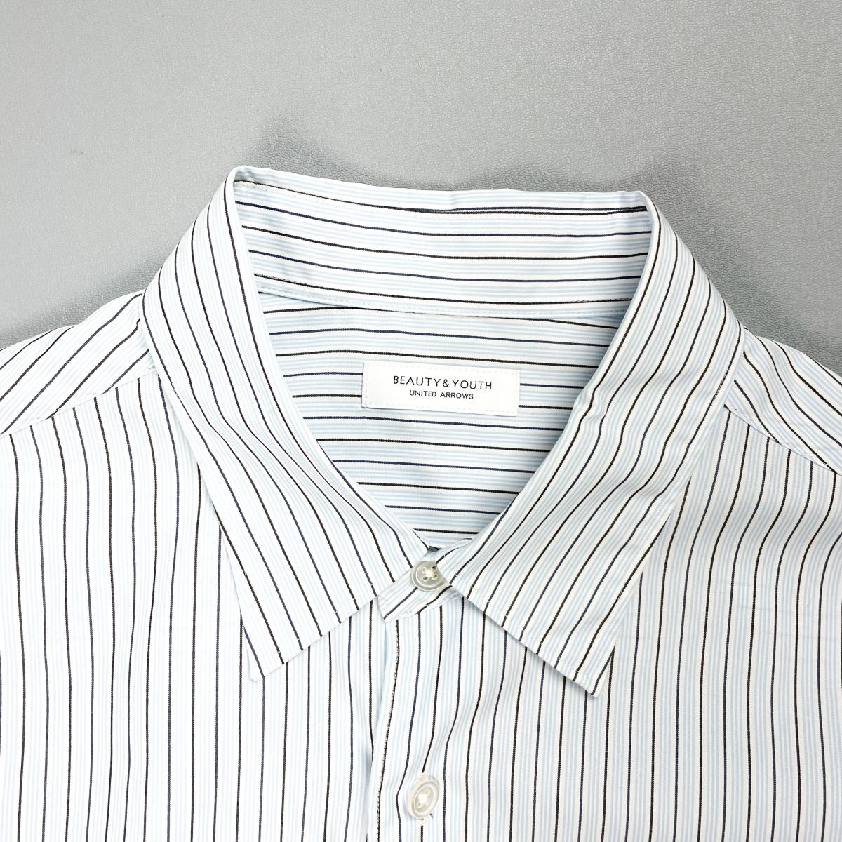 美品 BEAUTY&YOUTH UNITED ARROWS ユナイテッドアローズ ストライプ長袖ビッグシャツ オーバーサイズ メンズ 青 ブルー 水色 サイズM*GD128