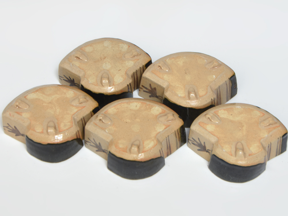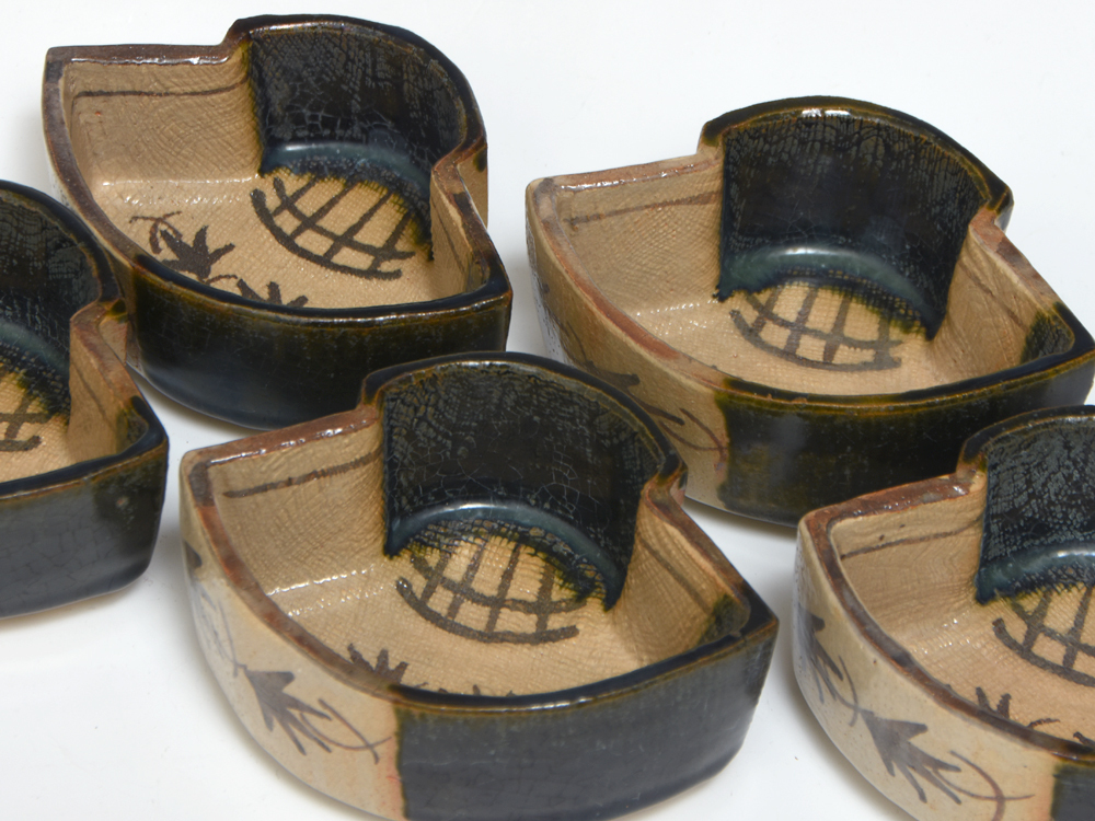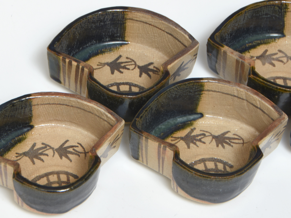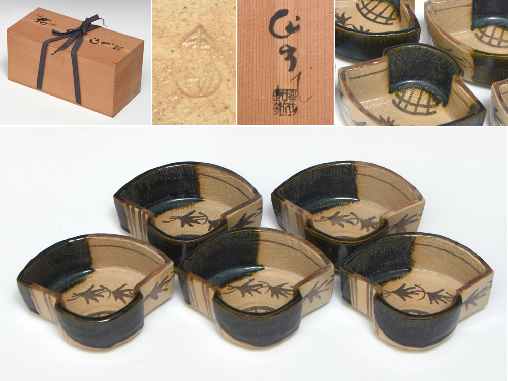 古瀬戸窯 加藤作助(造)織部 末廣 末広 向付 5客 菓子器 菓子鉢 懐石道具 茶道具 茶懐石 会席 鉢 皿 和食器 |