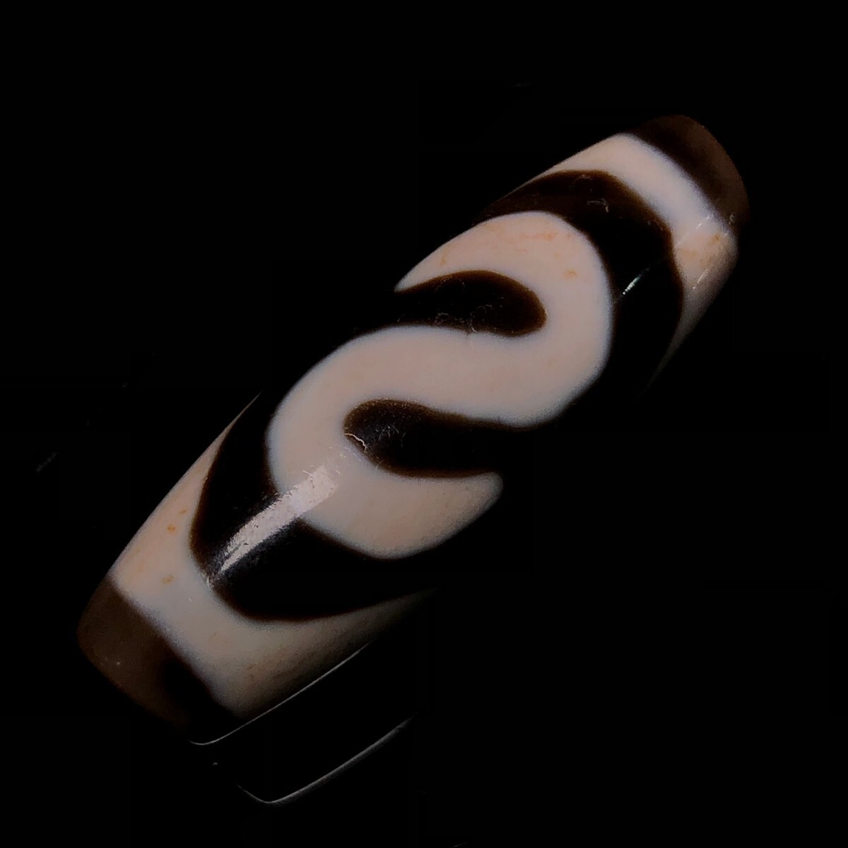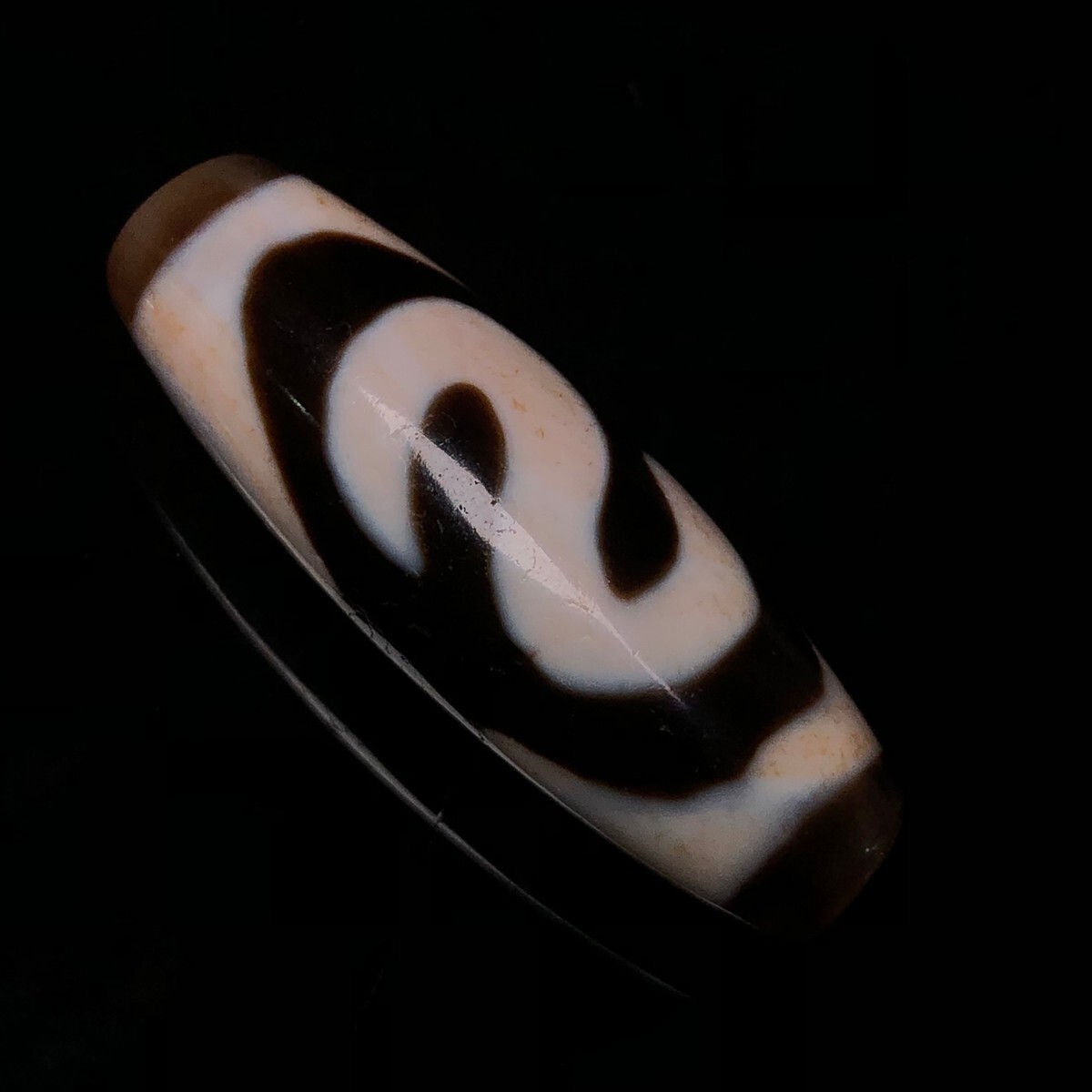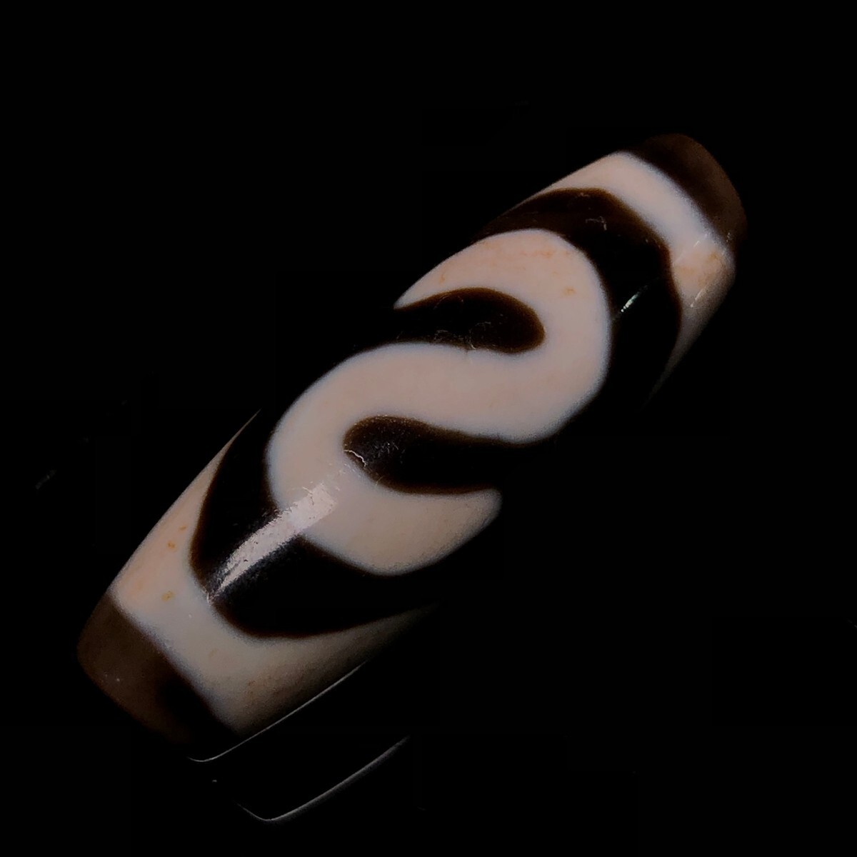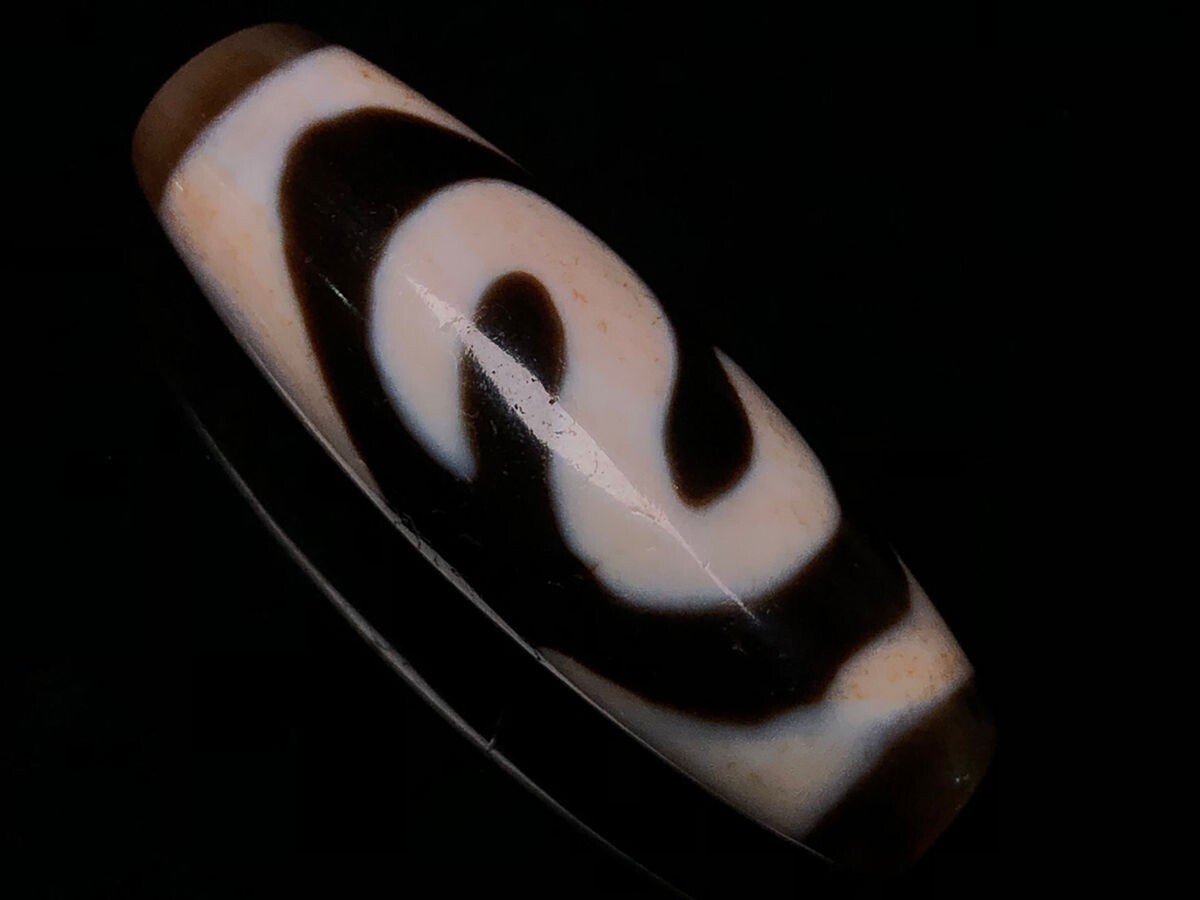 「時代物 藏區 瑪瑙彫り 七金錢銘天珠」極細工 裝身具 賞物 中国古美術 旧蔵出