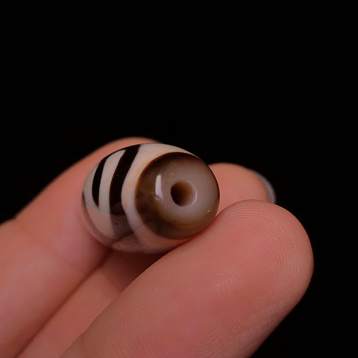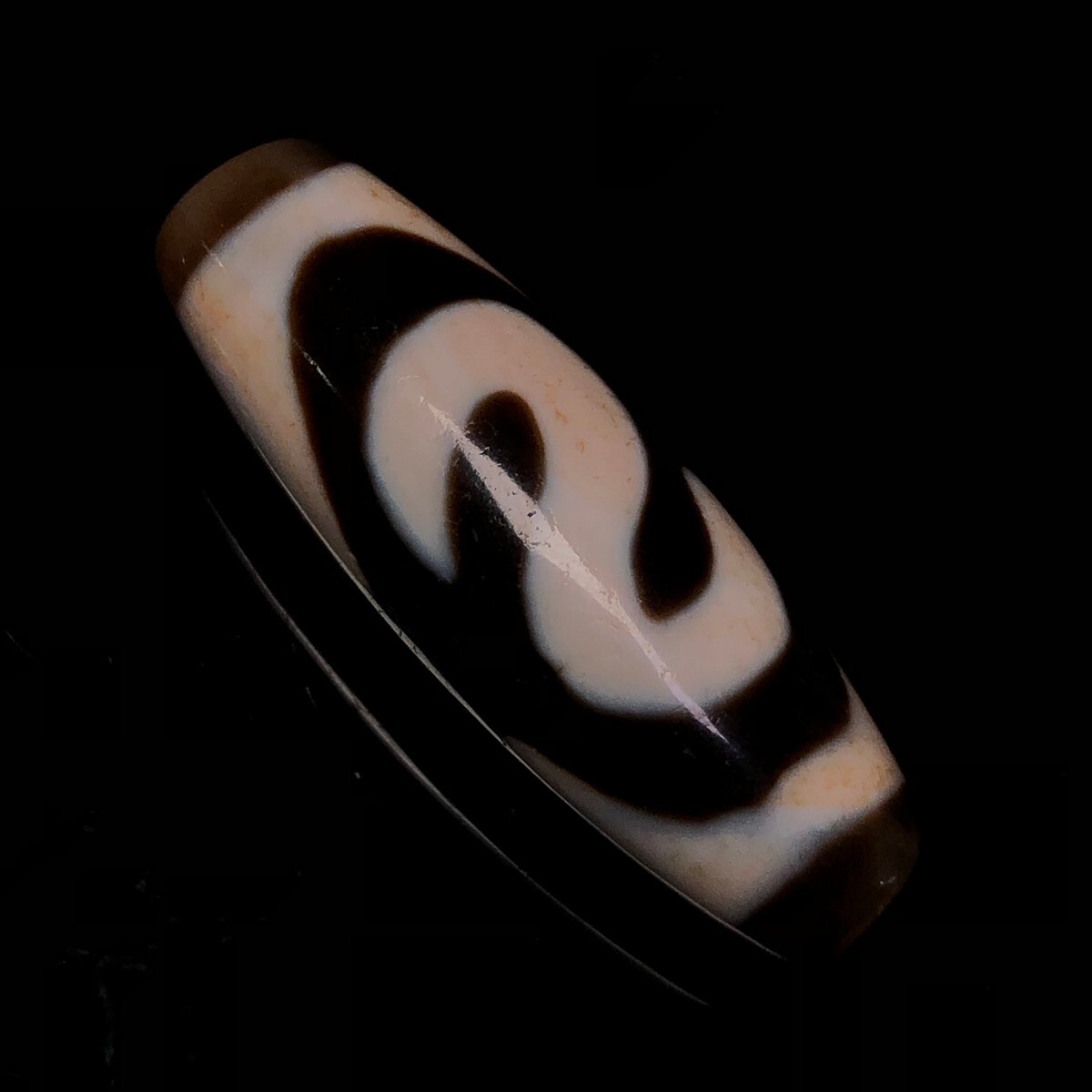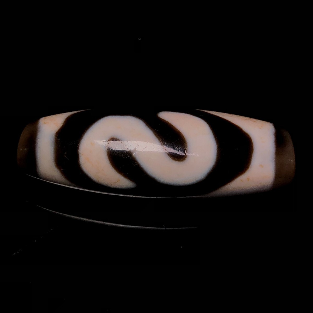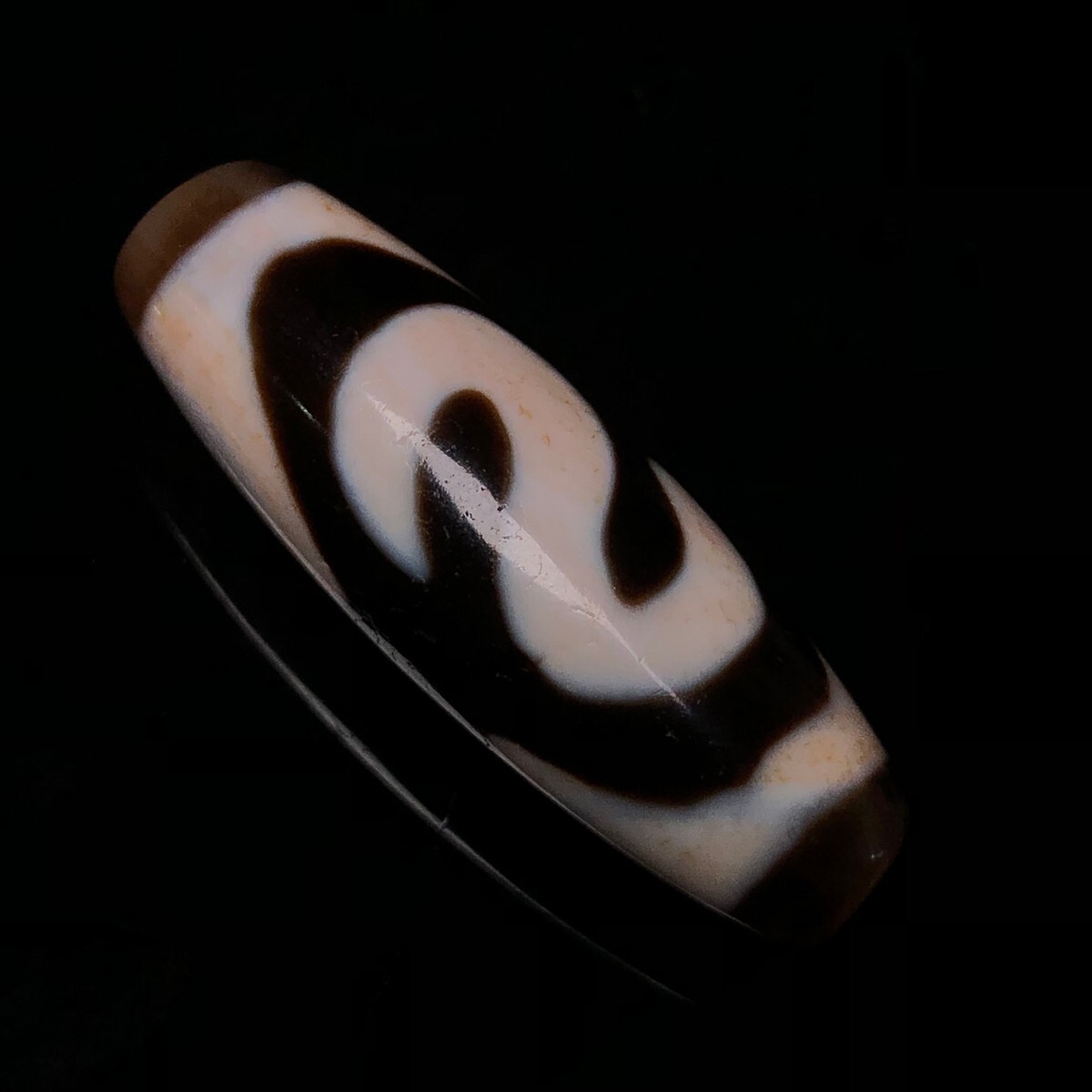 「時代物 藏區 瑪瑙彫り 七金錢銘天珠」極細工 裝身具 賞物 中国古美術 旧蔵出