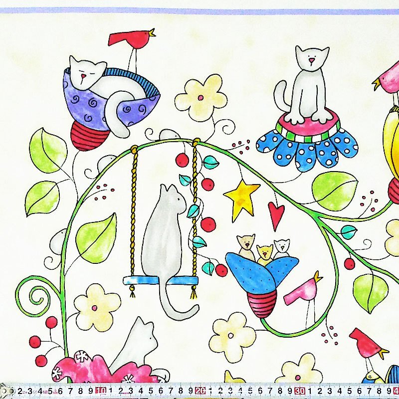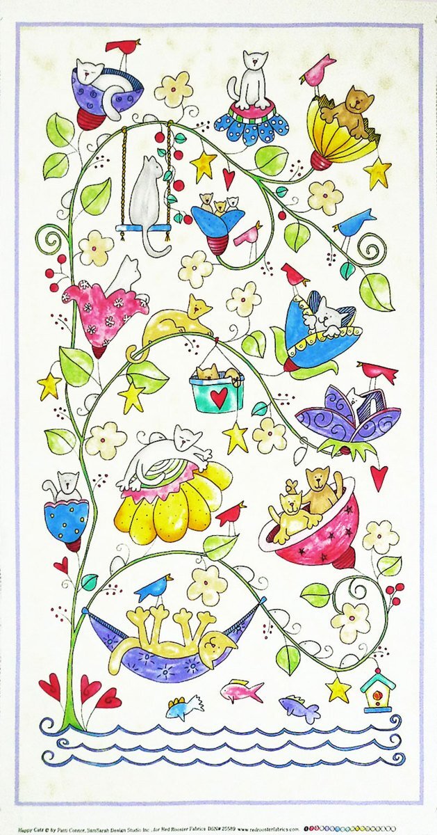 Happy Catz Panel ©by Patti Connor, SamSarah Design Studio Inc.,for Red Rooster Fabrics DSN#25589 RER456725589-MUL1