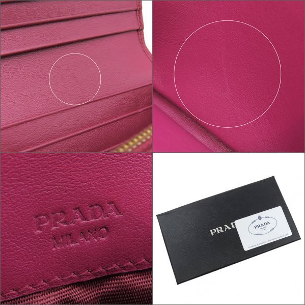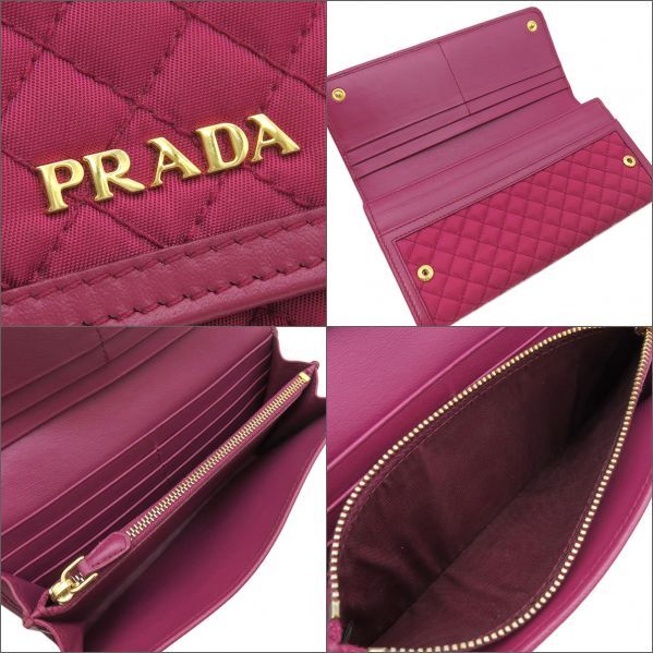 プラダ 長財布 テスート キルティング ウォレット ナイロン ピンク 赤 二つ折り ロゴ パスケース欠品 1MH132 中古