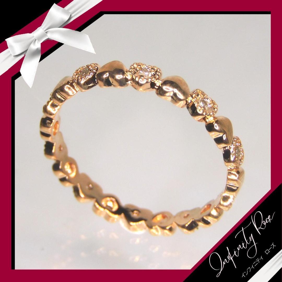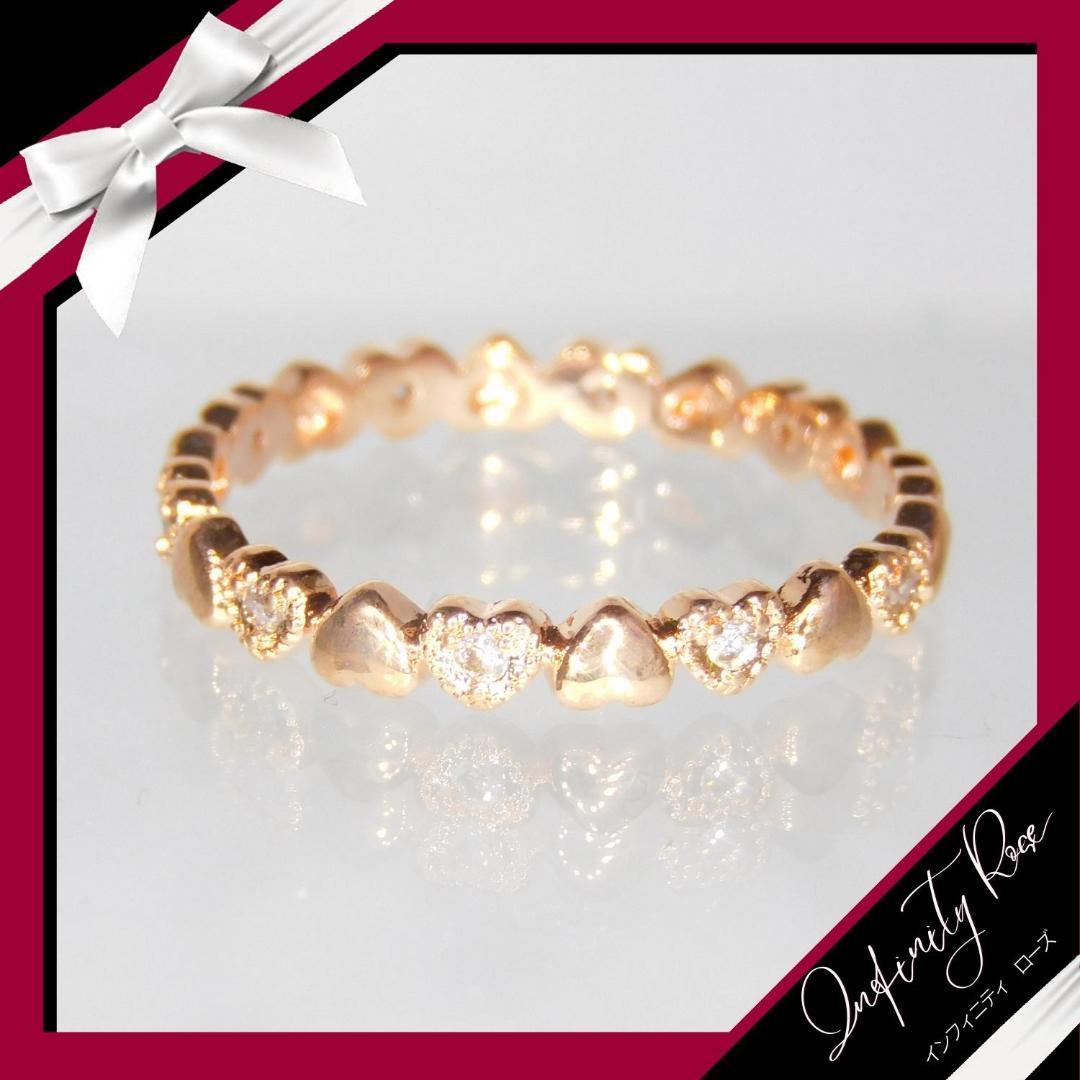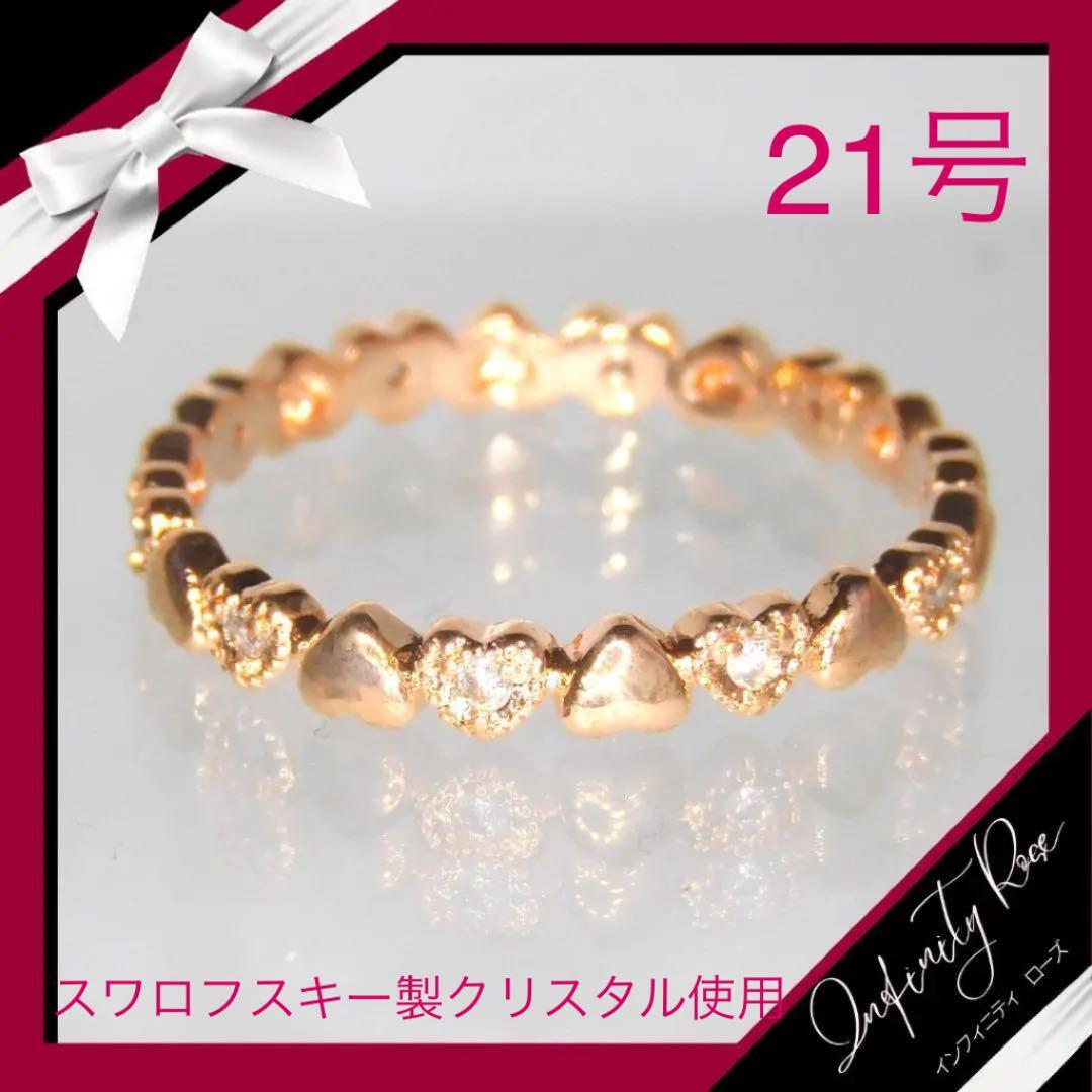 (1048)21号 ピンクゴールド 落ち着いたハート小粒リング 大人系 スワロフスキー製クリスタル使用