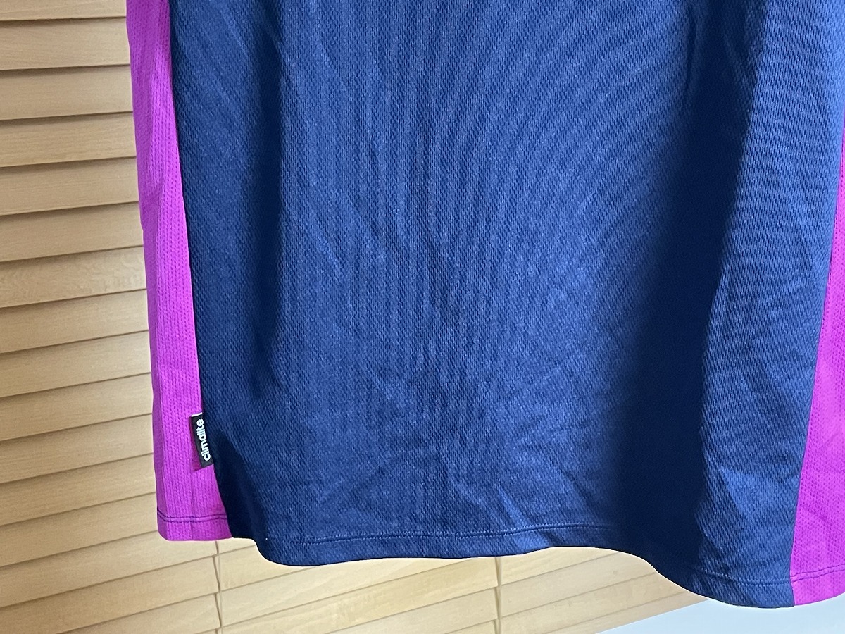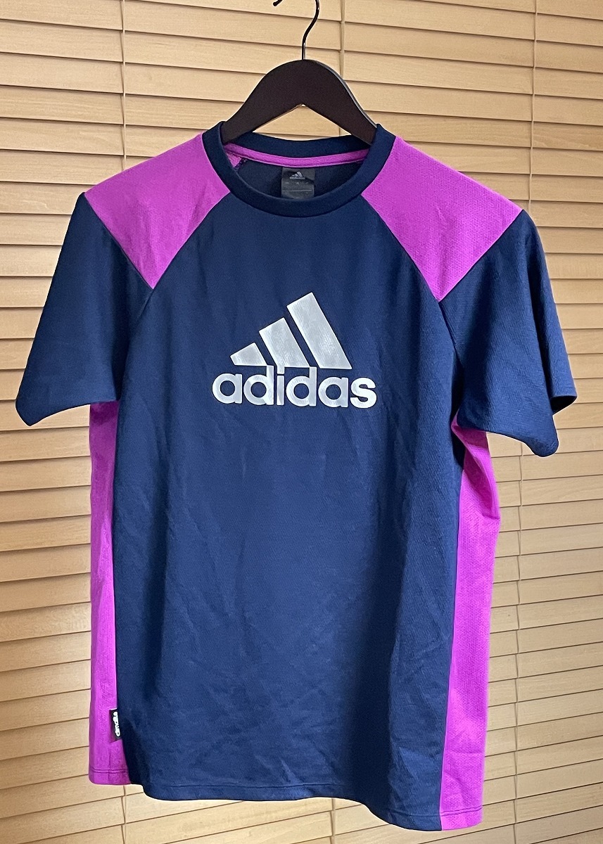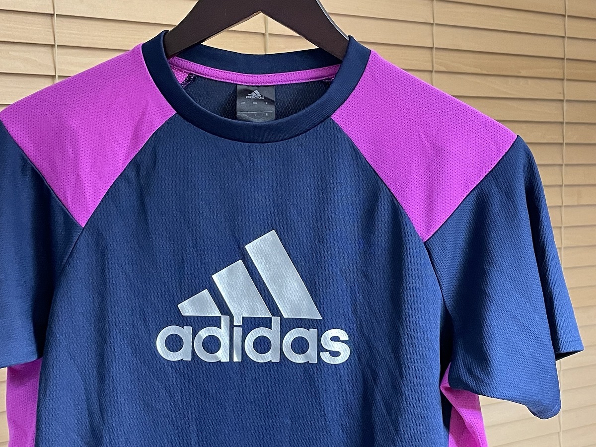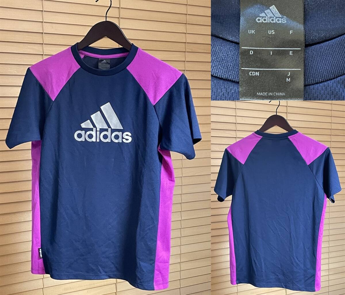 【激安1点のみ 国内正規品】adidas アディダス climalite クライマライト ポリエステル100% ロゴ 半袖 Tシャツ プラクティスシャツ M ネイビー×パープル系