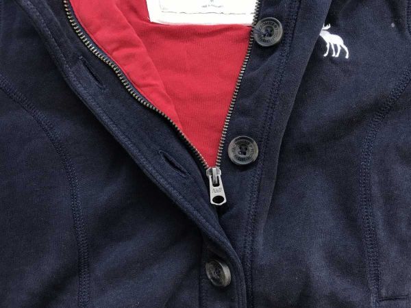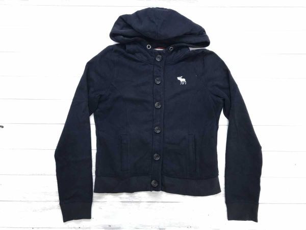 アバクロンビー&フィッチ Abercrombie&Fitch アメカジ サーフ ボタン スウェット パーカー ジャケット レディース 綿混合 M 紺です。