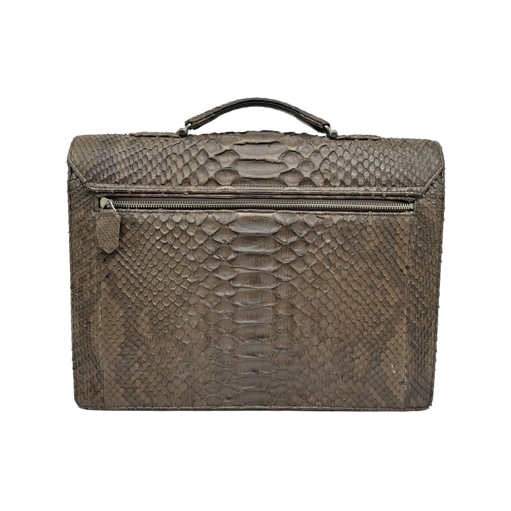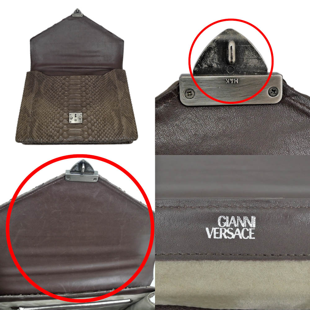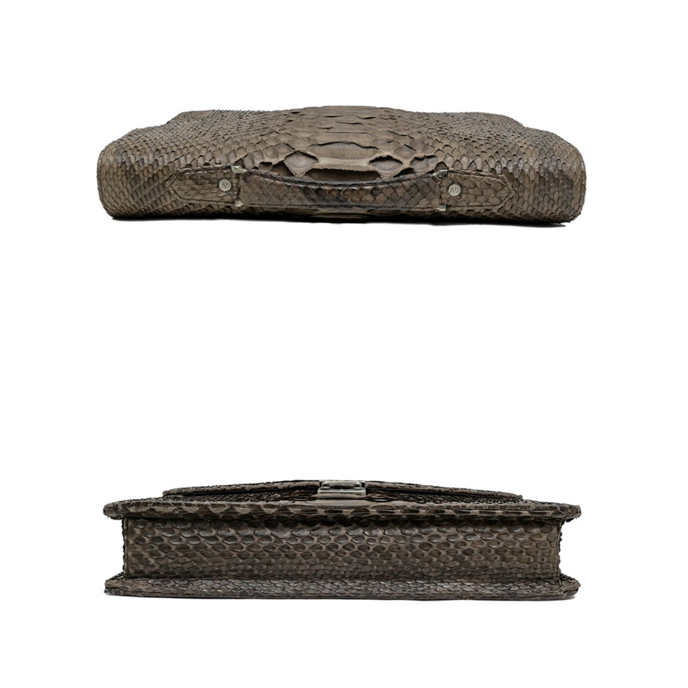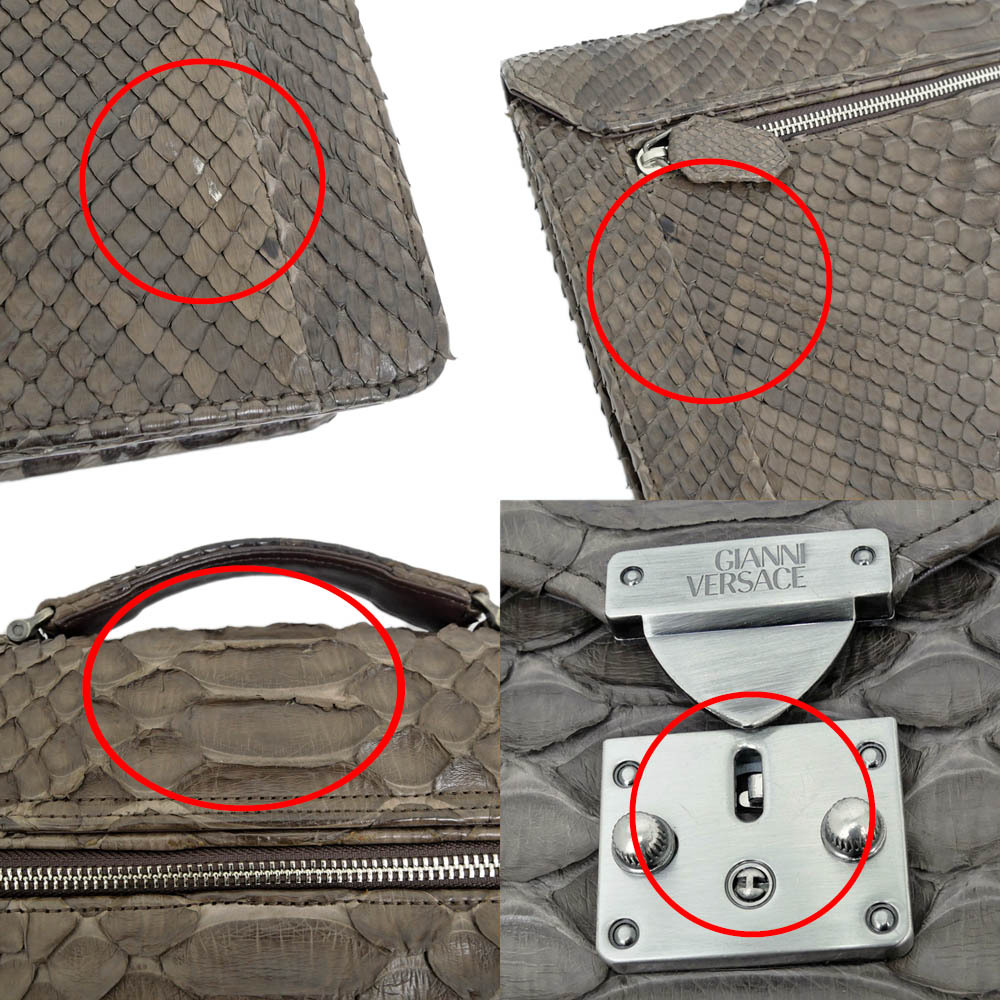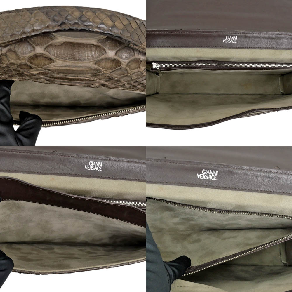 【名東】ジャンニ ヴェルサーチ ブリーフケース 鍵付き ブラウン パイソン ビジネスバッグ 鞄