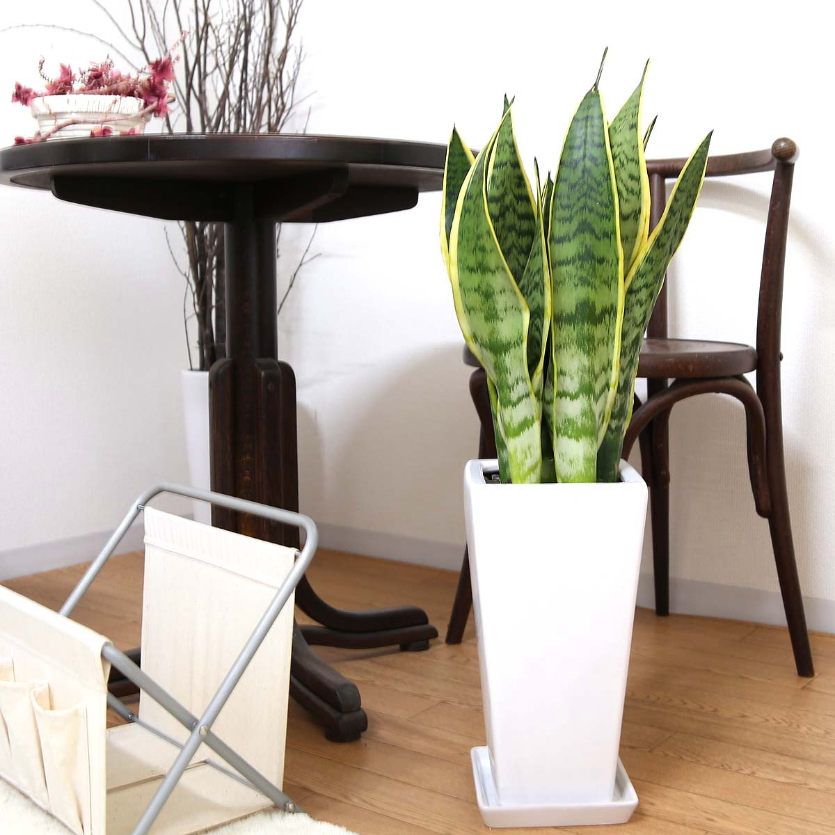 お洒落なホワイトのスクエア型、陶器鉢に植え込まれたサンスベリアのホワイト陶器鉢 を是非、お部屋やオフィスに飾ってくださいネ!