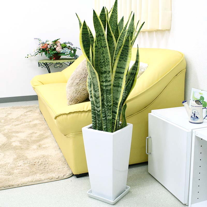 嬉しい陶器のお皿付き! インテリアとしても素敵でお手入れも簡単! 存在感バッチリ! 大きめサイズ このサイズで、このお値段!お買い得です! お部屋のリビングや、オフィスの受け付けなどに飾ってね。 嬉しい陶器のお皿付き! どんな場所にも素敵にマッチするサンスベリア。 より一層、豪華に見えるスクエア形のホワイト陶器鉢植えです♪ スマートな雰囲気と葉っぱの独特な模様もGood! |