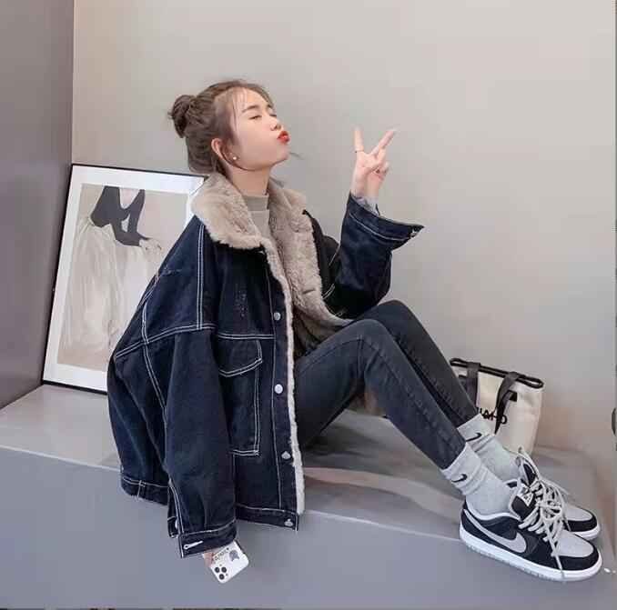 デニムジャケット 裏起毛付き 秋冬 防寒 レディース XL ブルー