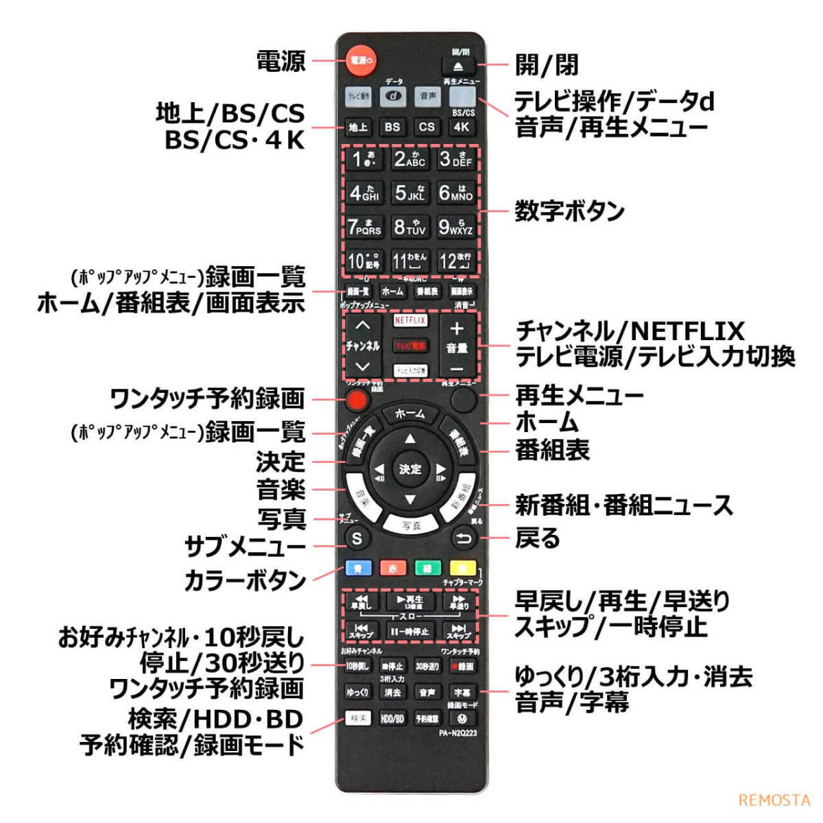 互換品 パナソニック ブルーレイ ディーガ リモコン N2QAYB001223 Panasonic DIGA DMR-SCZ2060 SUZ2060 4CT201 など レコーダー リモコン