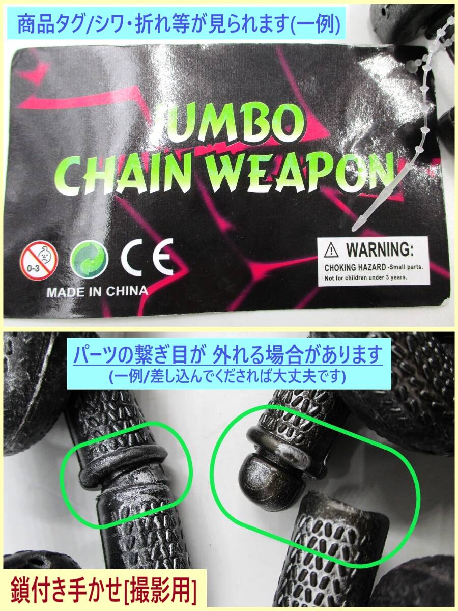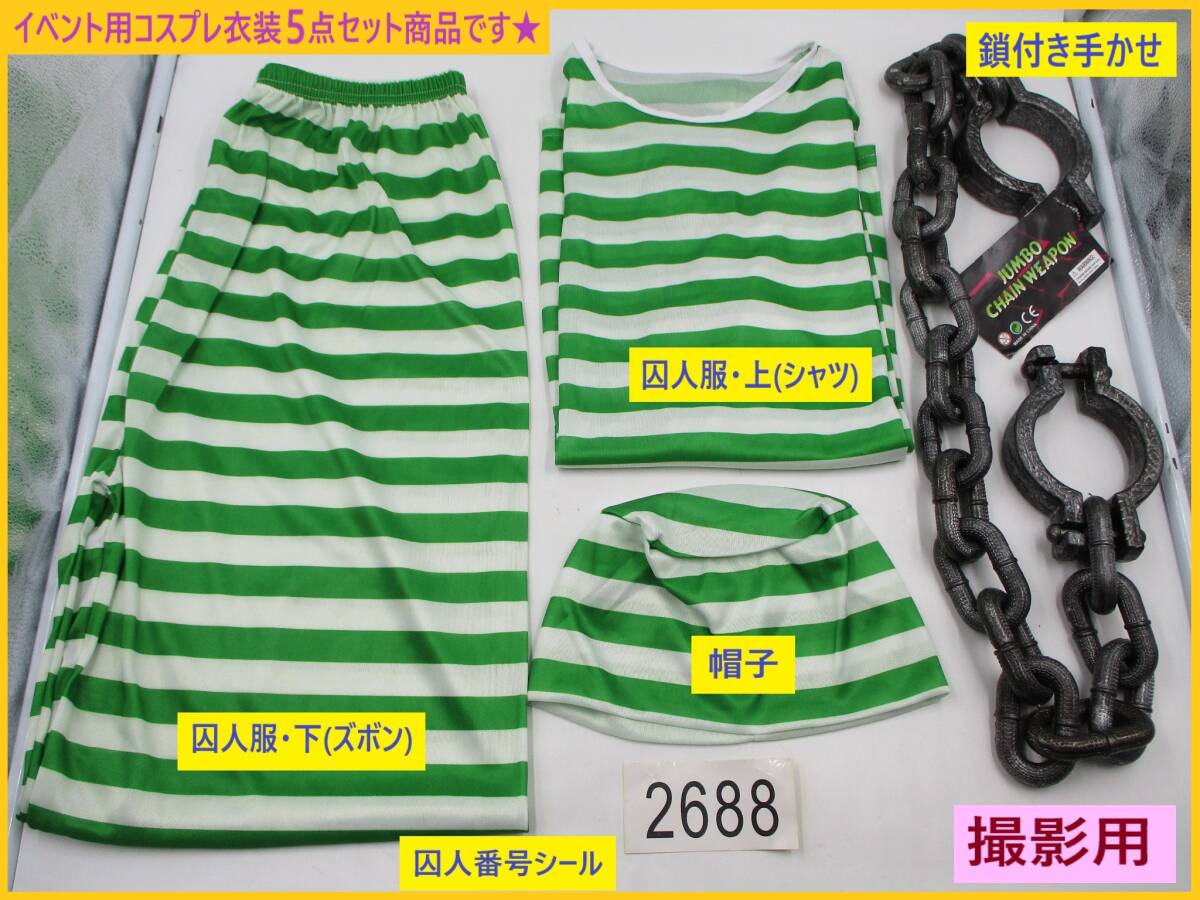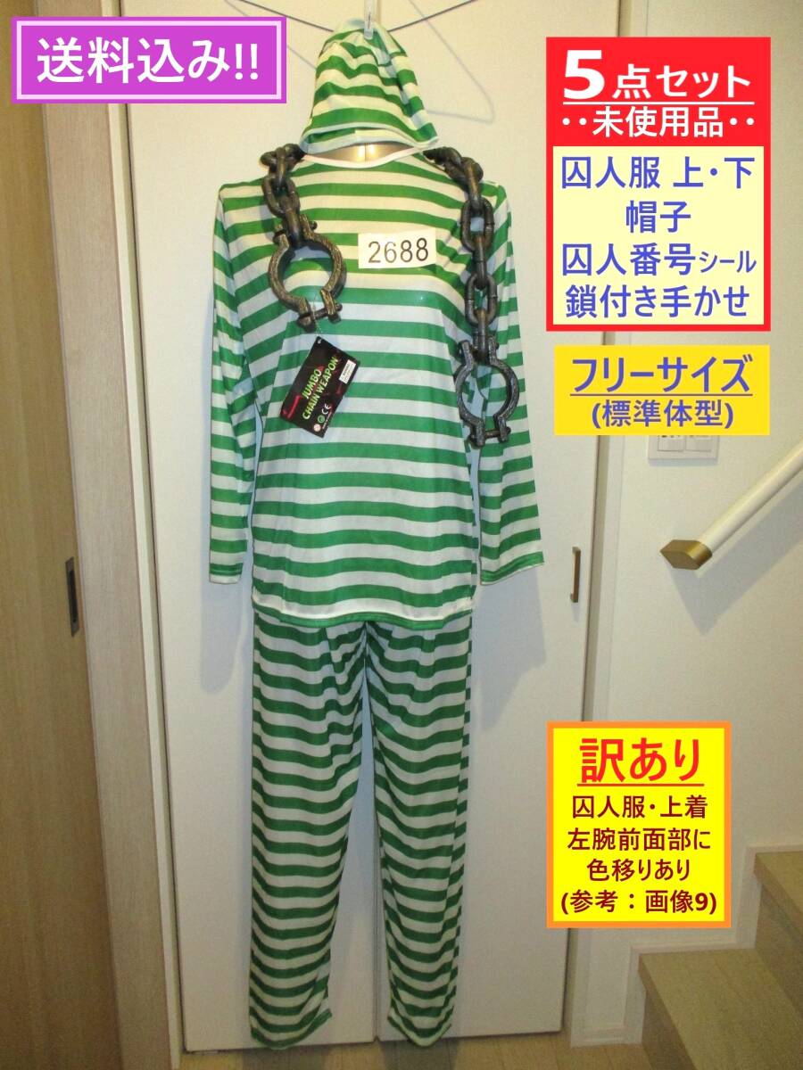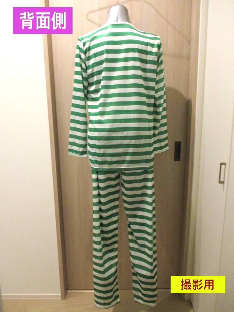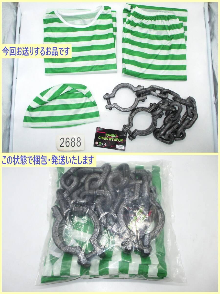 | 「訳あり(色移りあり)」扱いの、 イベント向けのコスプレ衣装セット、 未使用品です。 倉庫での長期保存品です。 気になさる方はご遠慮ください。 コスプレ用 囚人服(長袖・長ズボン)・ 帽子・囚人番号シール・ プラスチック製の鎖付き手かせ 5点セット商品です。 *当方出品の [囚人服セット][大きい 鎖付き手かせ]を 単品でお求めになるより 少々お得な価格設定です 画像1(TOP画)~画像8は 参考として 撮影用を使用しています。 画像9・10は今回お送りするお品を 撮影しています。 あらかじめご了承ください。 以下の商品説明をよくご覧になってから、 ご検討をお願い致します。 神経質な方、完品をご希望の方は、 御入札をご遠慮ください。 【商品内容】 イベント向けのコスプレ衣装 5点セット ・男女兼用 ・フリーサイズ(標準体型) 《参考製品サイズ》 *個々のお品で多少の差異あり ☆囚人服セット [囚人服・上着] 着丈(後ろ身ごろの首から裾) 約 68cm 身幅(両脇の下の幅) 約 52cm 袖丈(脇の下縫い目から袖口) 約 46cm 首回り周囲寸法 約49cm *首回り周囲寸法が タイトな作りのお品のようです (参考:画像5) 生地は多少伸びますが 頭部サイズ(頭囲)によりましては 着用時に きつく感じられる場合があります あらかじめご了承ください [ズボン] 総丈(腰ゴムより裾) 約 103cm 股下丈(また下縫い目から裾) 約 70cm 裾幅 約 16cm 腰ゴム部横幅 約 30cm(+ゴムの伸縮分) [帽子] 画像6の状態で、 横幅 約 27cm・高さ 約 17cm [その他] ・海外製/メーカー等の詳細は 不明 ・囚人番号シール 1枚 付属 ・素材:ポリエステル ・極薄(ペラペラ)の生地になります ご使用の際には 下に透けてもいいインナー・Tシャツ等を 着用することをお勧めします また 耐久力は あまり期待できません ☆鎖付き手かせ 商品名: 「JUMBO CHAIN WEAPON」 ・プラスチック製 ・サイズ 全長 約 95cm (測り方により多少の差異あり) チェーン1個の大きさ 約 7.5×4.5(cm) 手かせ部/外径 約 9.5cm・内径 約 7.5cm ・重量 約 140g ・中国製 *トップ画像・画像3・4(正面・背面)は 成人女性型マネキンに着せたイメージです 参考にどうぞ *セット内容・状態等は画像にてご確認下さい *実際の商品の色味とは異なる場合があります *「参考製品サイズ」は 数点の製品を採寸した寸法の平均値です 実際にお送りするお品の寸法とは 多少の差異がある場合があります 【状態等】 ・未使用品です。 専用のパッケージ等の外装は、ありません。 ・海外製につき、商品には、 糸のほつれ・縫製の粗さ(囚人服セット)、 紙タグの折れ・色あせ・スレ・キズ(手かせ) 等の傷みがある場合があります。 また、長期保存品につき、 汚れ・シワなどがある場合があります。 美品・完品をご希望の方はご遠慮ください。 ・保管中、もしくは、配送中などに、 「手かせ・鎖」パーツのつなぎ目が 外れてしまう場合がありますが、 差し込んでいただければ簡単に直せます。 (参考:画像8) ・「囚人服・上着」左腕前面部付近に、 緑色ボーダーの色移りが見られます。 画像をご確認下さい。 (参考:画像9) 【補足】 長期保存品、及び、 小さく折りたたんでいるため、 シワ・折れ目が見られます。 画像にてご確認ください。 (発送時の状態 画像10) 以上の点より、 「訳あり」扱いとして出品いたします。 ご承知いただける方のみ、 ノークレーム・ノーリターンにて ご検討ください。 | ||