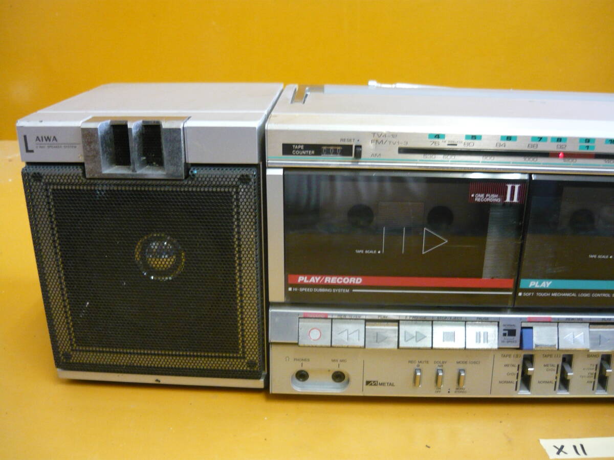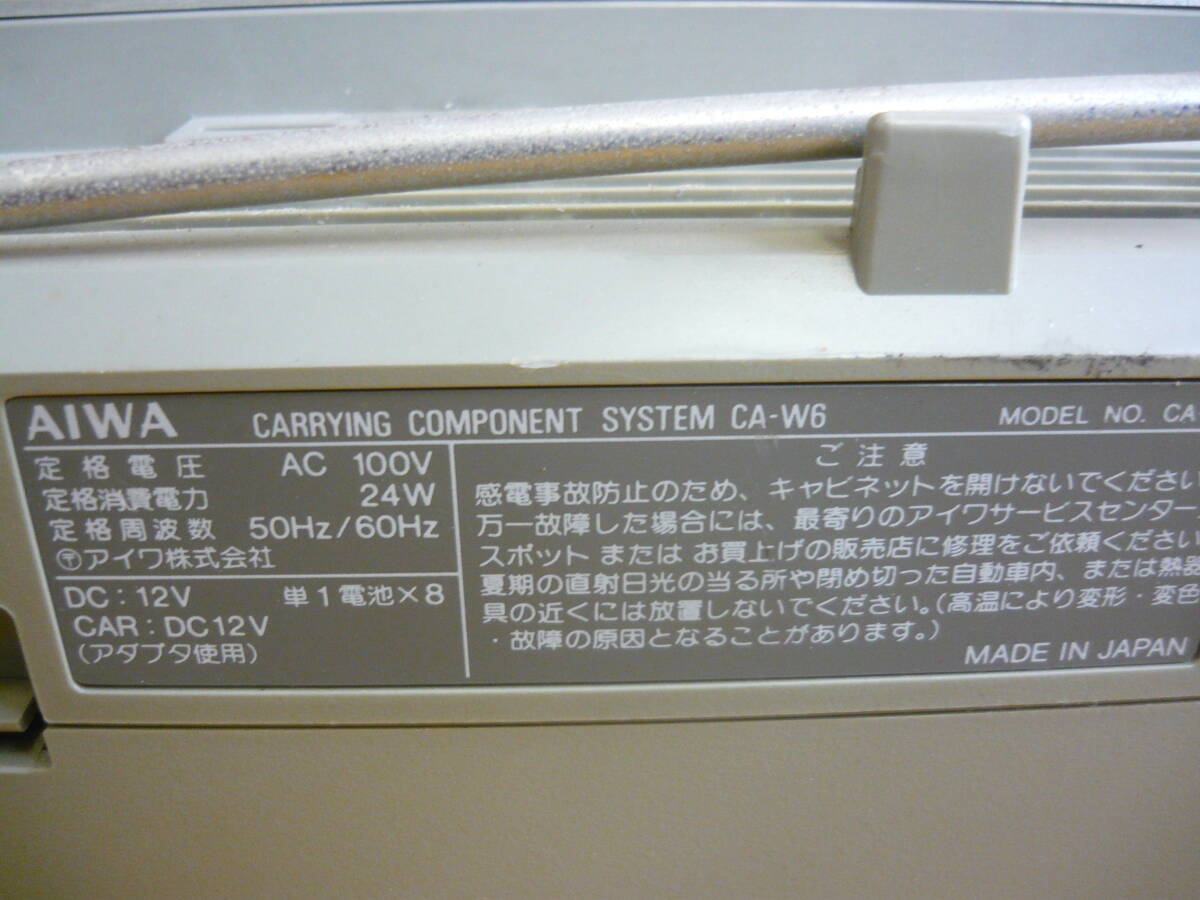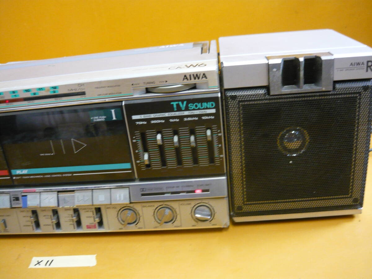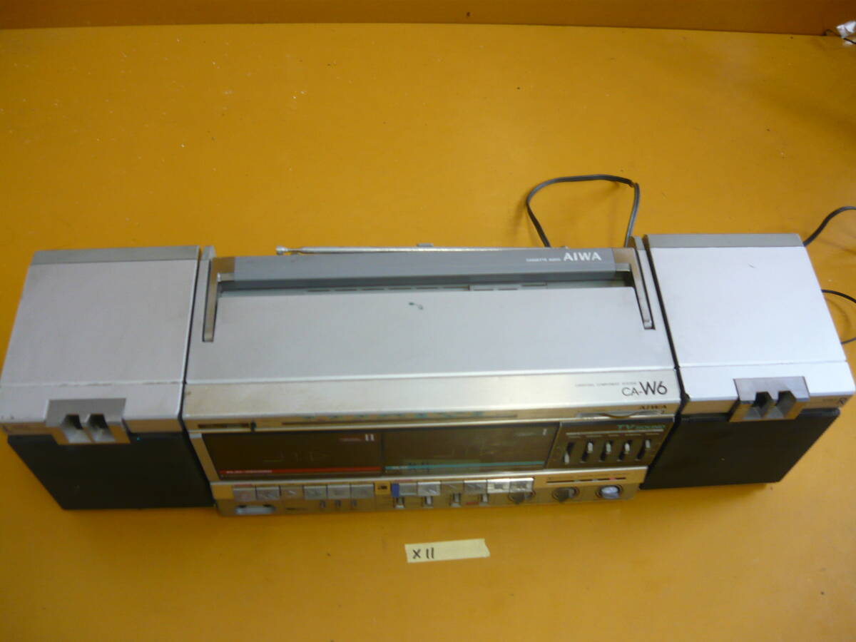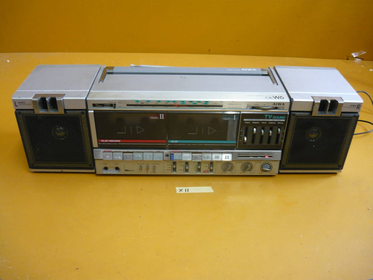 (X-11)AIWA ラジカセ CA-W6 通電確認のみ ジャンク ※片方スピーカー固定弱い