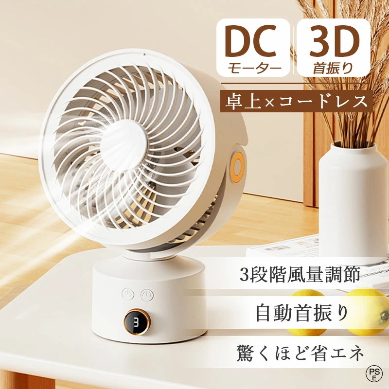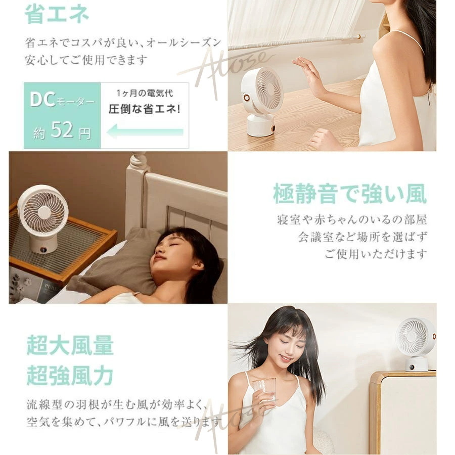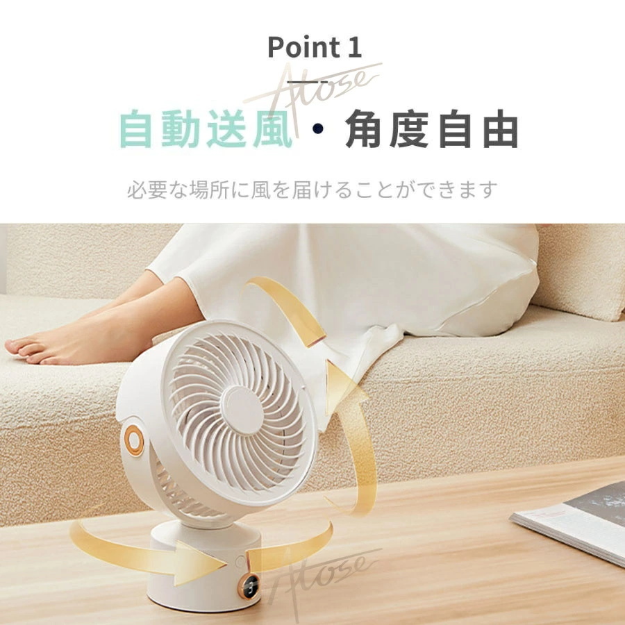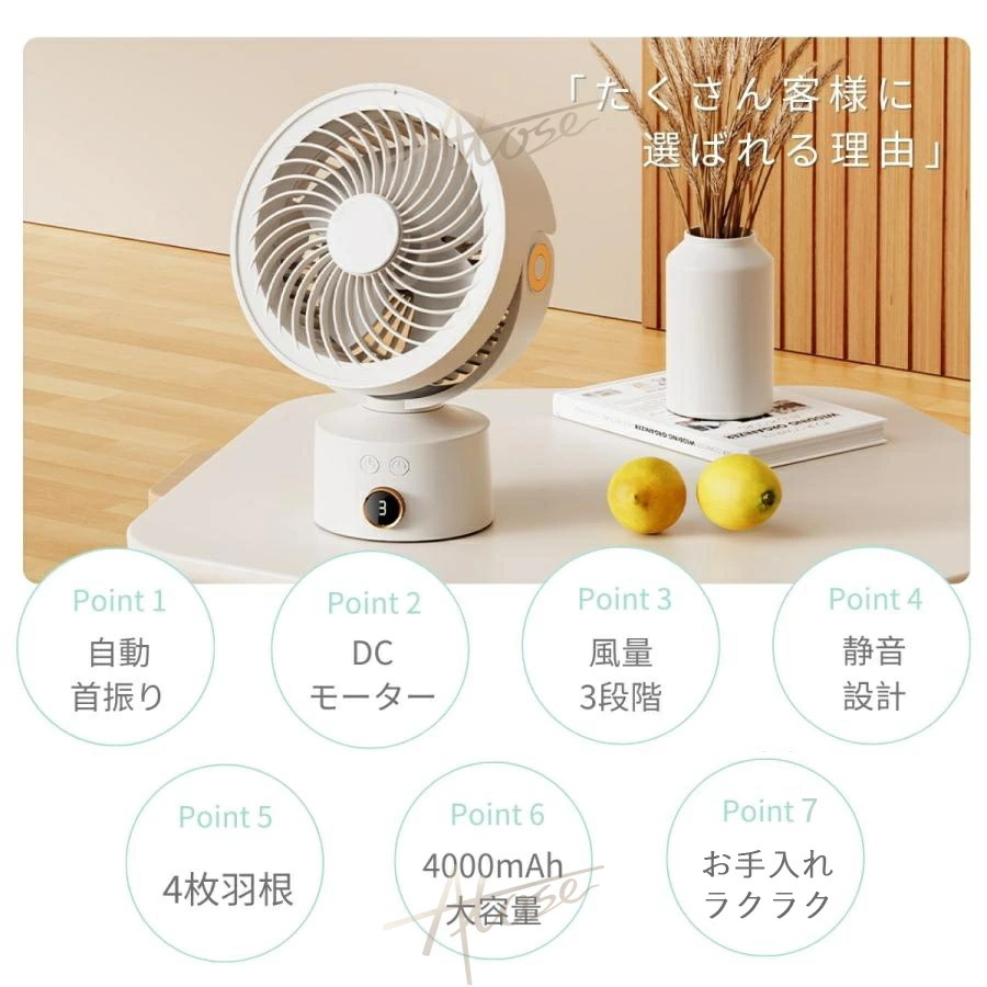 サーキュレーター コードレス 扇風機 おしゃれ dcモーター 卓上扇風機 小型 静音 自動首振り 左右首振り 送風機 空気循環 静か 寝室用