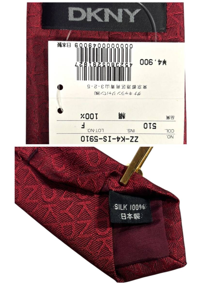 ◆新品未使用タグ付◆やや細め◆ロゴ柄◆DKNY 高級SILK ネクタイ 日本製 総柄 ダナキャラン USED N132