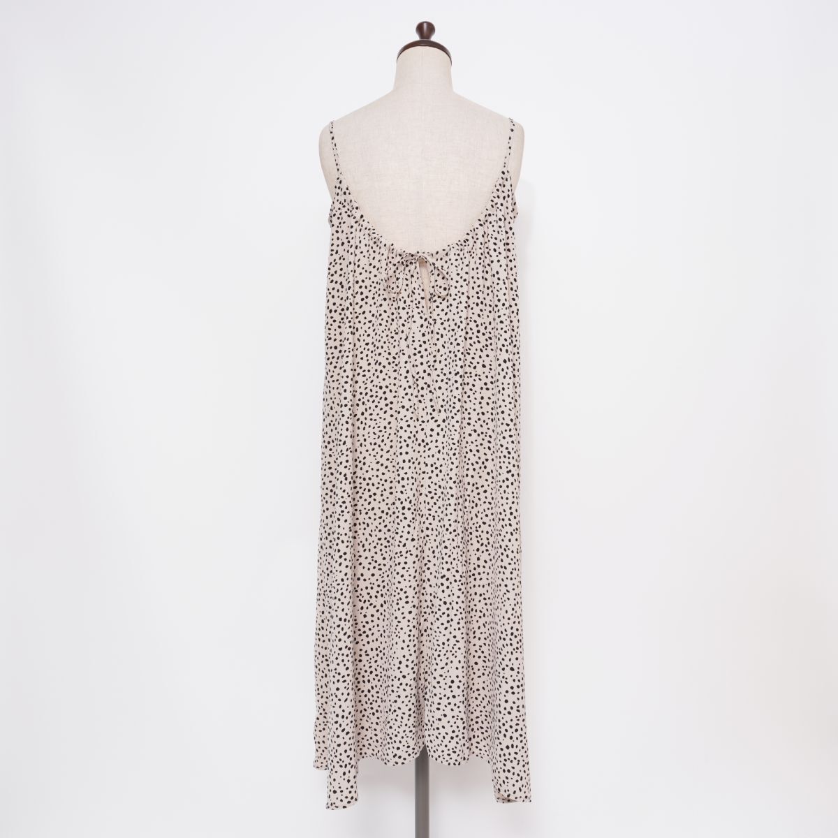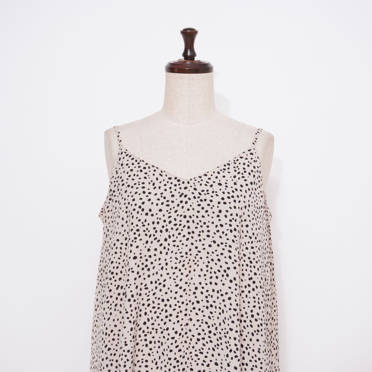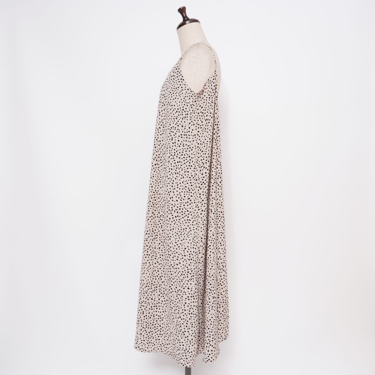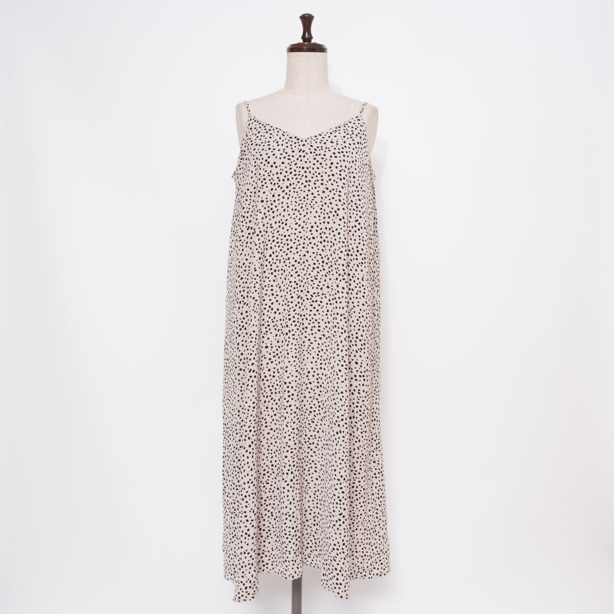 美品 B MING by BEAMS ビーミングバイビームス マルチドットキャミソールワンピース ロング丈 裏地なし ベージュ系 サイズM*GD785