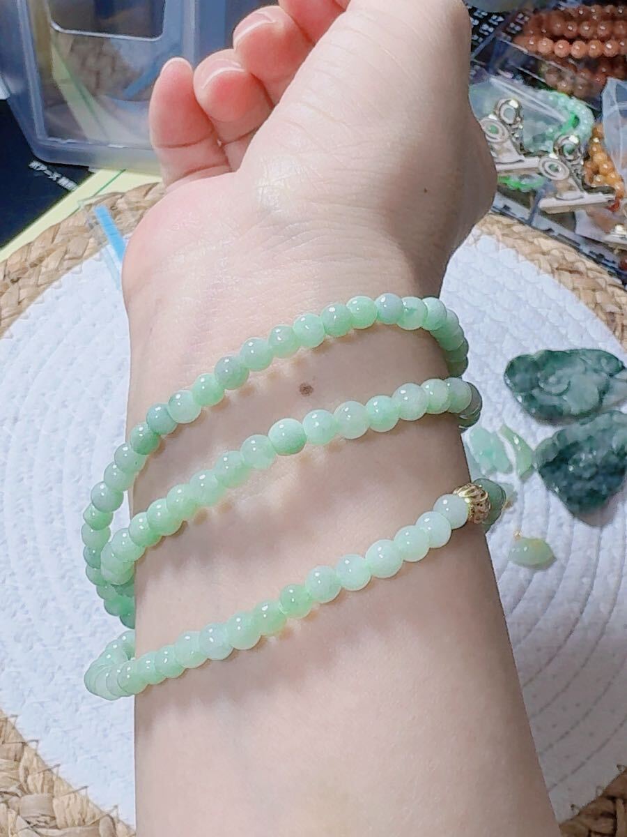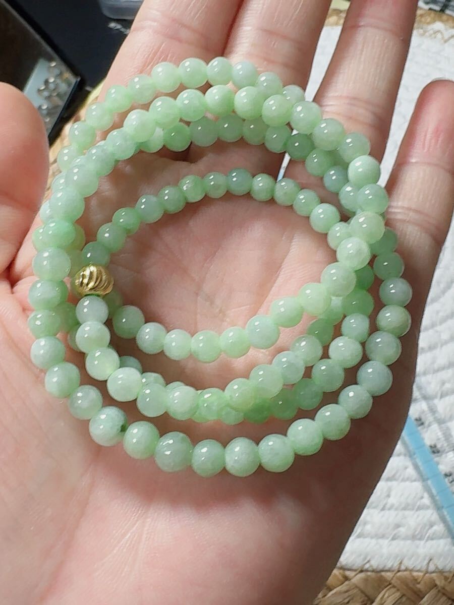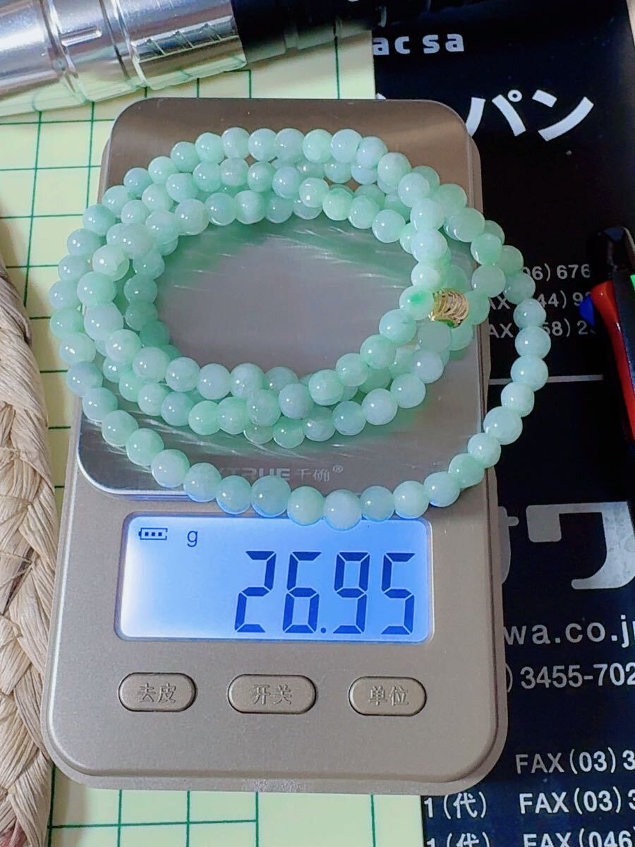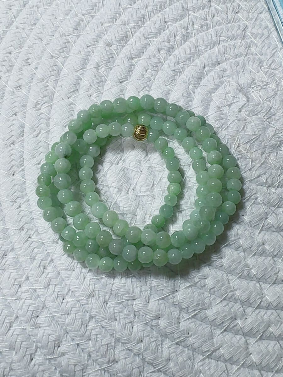 R2-01993天然本翡翠《本物保証》 淡緑色翡翠 ネックレス約60cm 天然石5.2mm 宝石 一点物 希少 縁起物 お守り パワーストーン