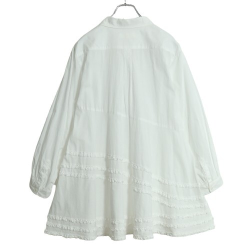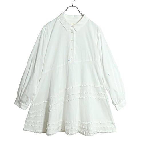 商品説明 | 【実寸約】肩幅45袖丈55バスト102着丈77.5(cm) 【サイズ表記】 なし。実寸をご参照くださいませ。 【素材】 綿100% 【状態】普通の使用感のあるお品物 薄シミ数か所あり 洗剤の香りがします 【デザイン】白系 綿ローンの長袖ブラウスです。 長めの丈でチュニックとしても着用可能♪ キュートな段々フリル付き♪ 上半分にボタン付き。 これ一枚でもレイヤードでもロマンティックコーデに大活躍するアイテムです。 |