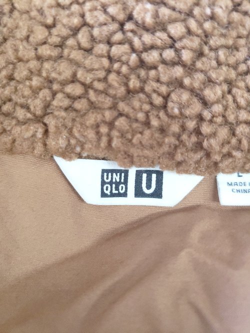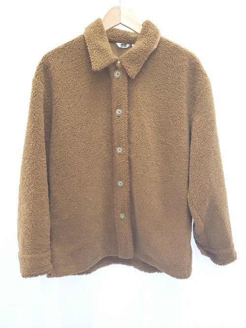 ◇ ⊆ ユニクロ ボア フリース 長袖 ショート コート サイズL ブラウン系 レディース E