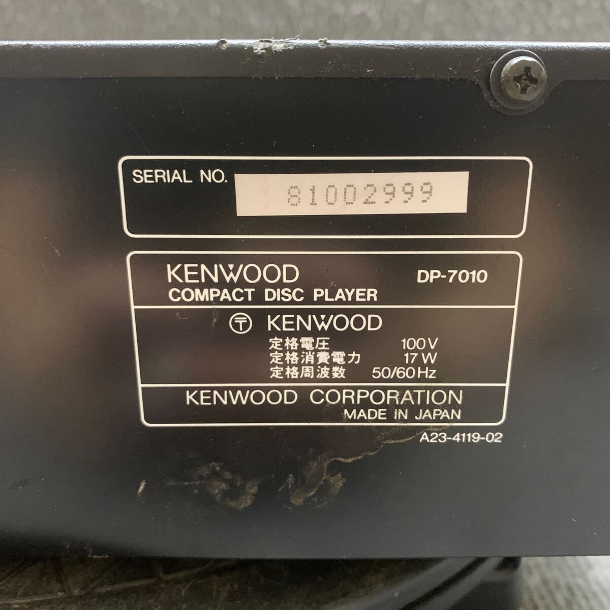 MYM9-370 激安 KENWOOD DP-7010 COMPACT DISC PLAYER 通電未確認 中古現状品 ※3回再出品で処分