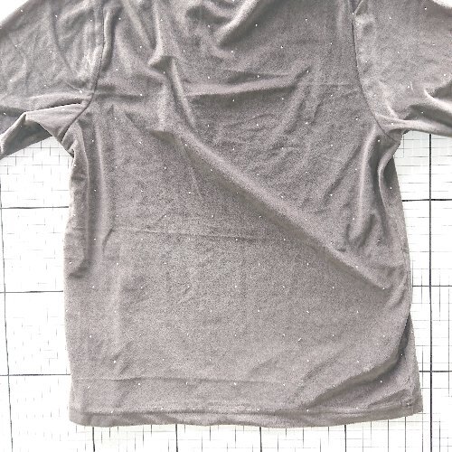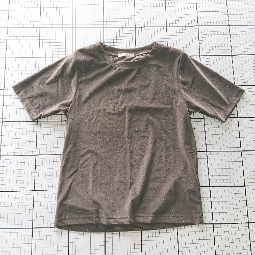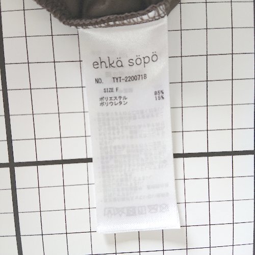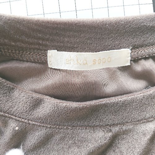 ◇ Θ ehka sopo エヘカソポ ベロア調 ラインストーン 半袖 Tシャツ カットソー サイズF ダークブラウン系 レディース E