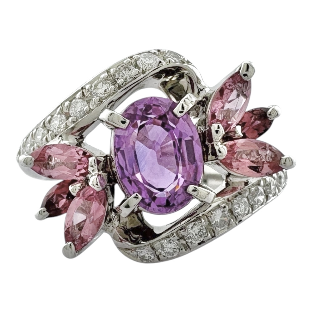 材質(石) | ピンクサファイア(約1.48カラット) / ピンクトルマリン / ダイヤモンド(約0.25カラット) |