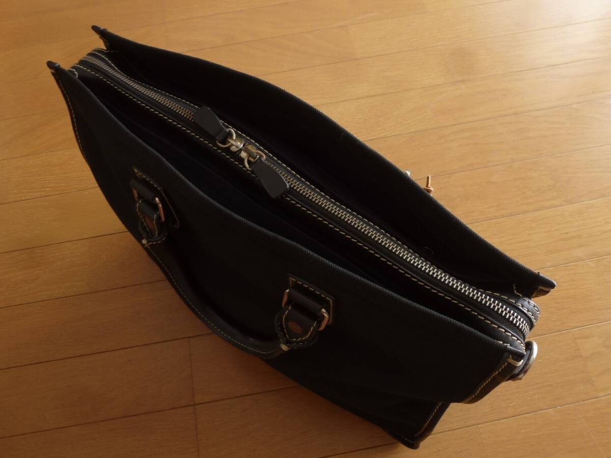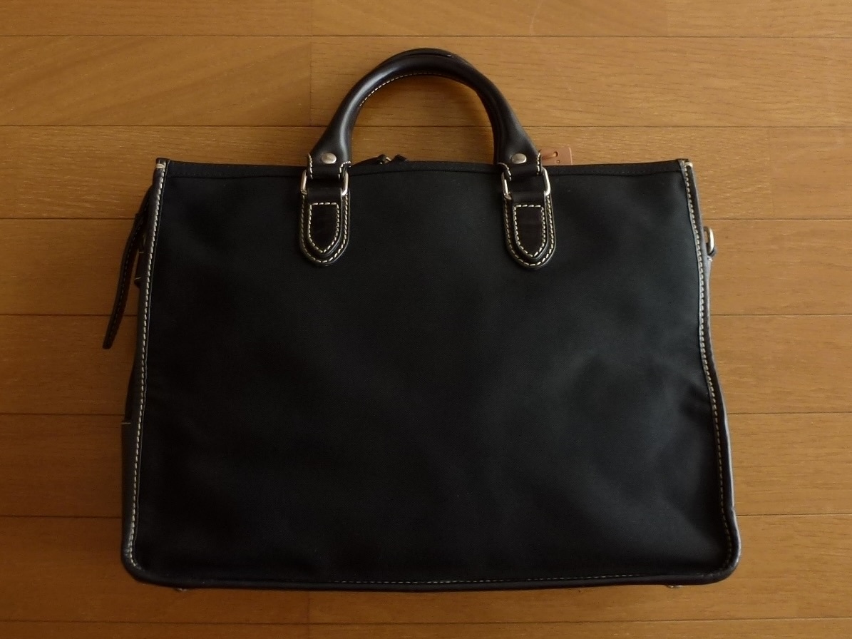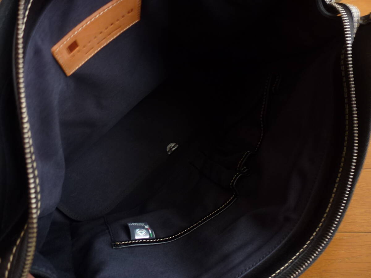 ・イタリア製 ・持ち手、淵、サイド底面などにレザーが使用されています。 ・メインポケット:3つ(1つはファスナー付き) ・内側:小ポケット1つ,ペン入れ2本 |