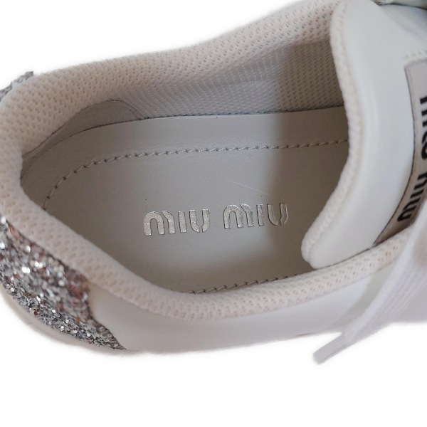 ミュウミュウ miumiu スニーカー 35 5E927B - レザー 白×シルバー レディース グリッター/インソール取外し可 靴
