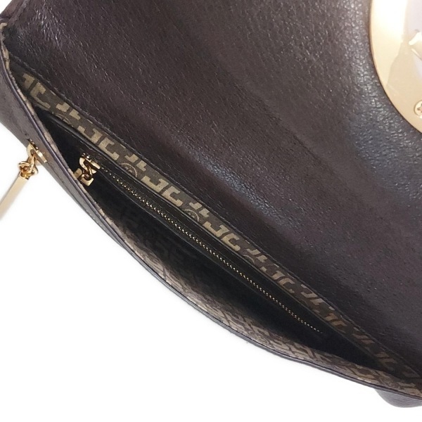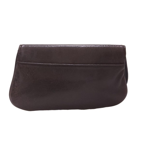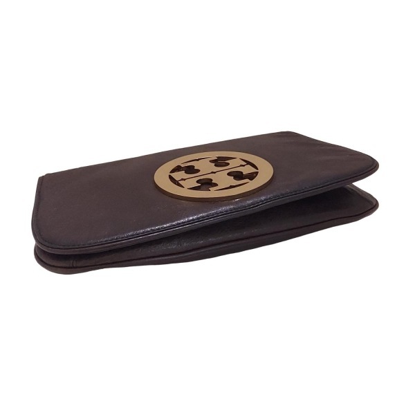 トリーバーチ TORY BURCH クラッチバッグ - レザー ダークブラウン×ゴールド バッグ