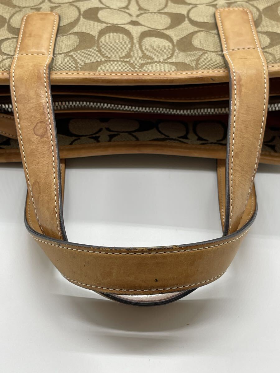 コーチらしいシグネチャー柄の定番デザインで、普段使いに最適なトートバッグです。
