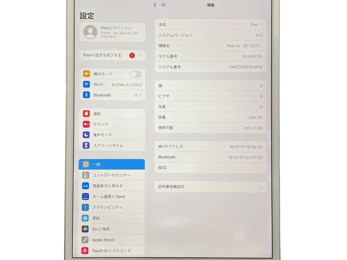 | 【商品名】 ■ Apple iPad Air 10.5インチ 第3世代 Wi-Fiモデル 256GB MUUR2J/A ホワイトスポットあり シルバー A2152 1923551 |