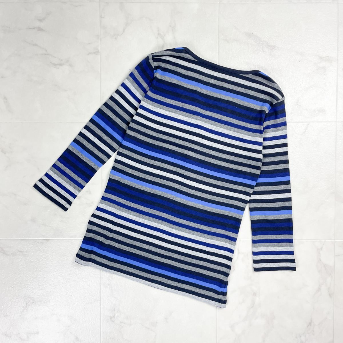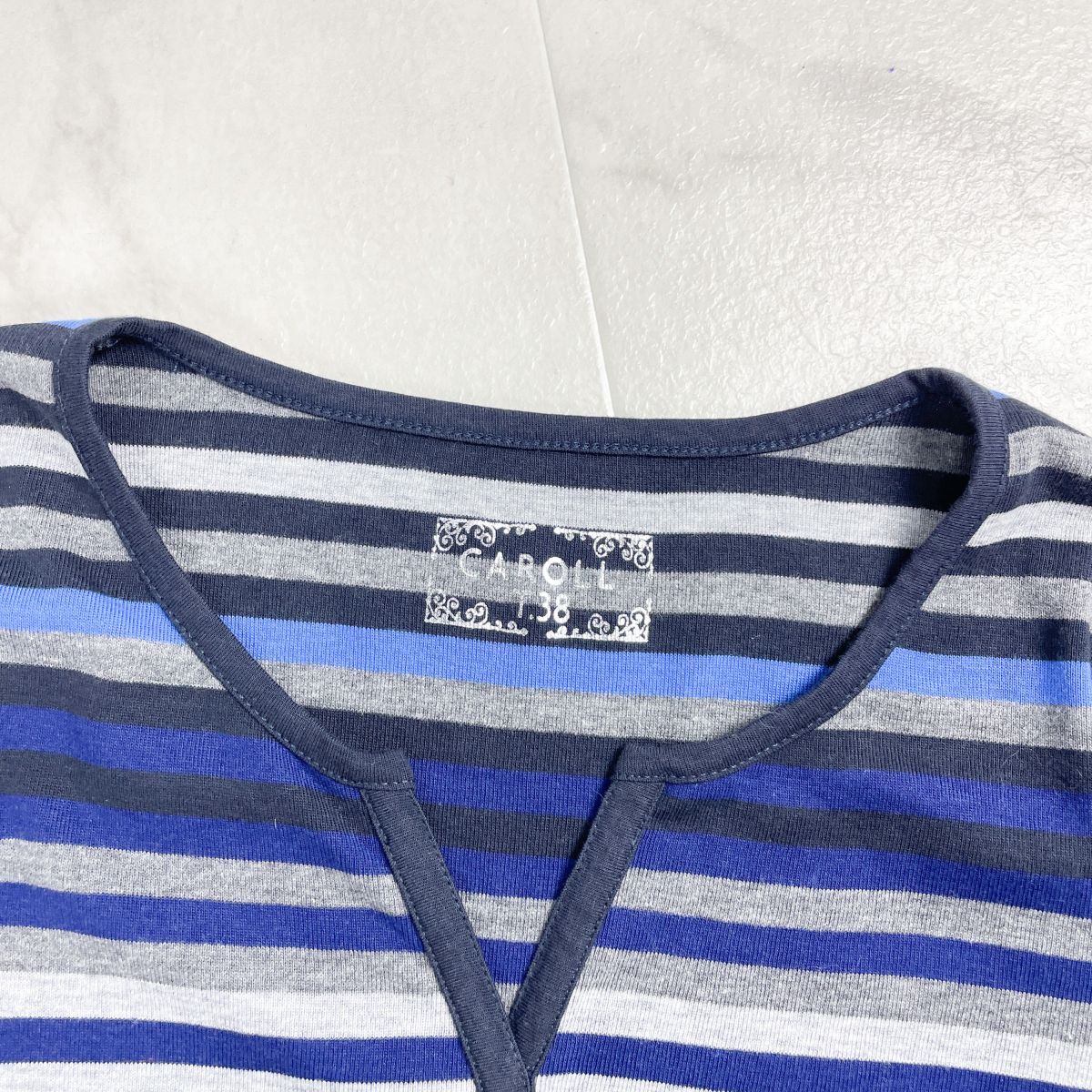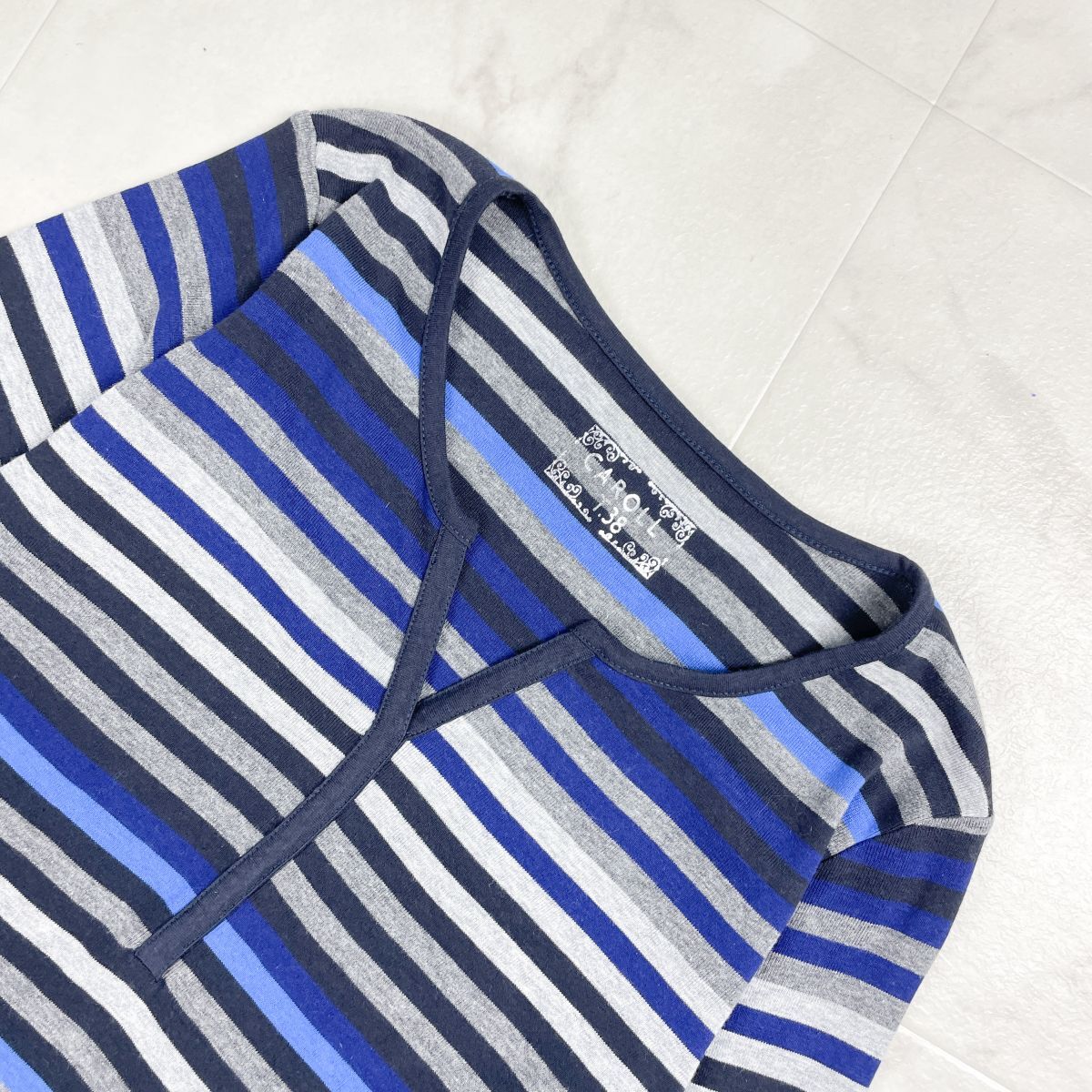 美品 CAROLL キャロル スキッパーボーダーカットソー 七分袖 トップス レディース グレー系 サイズ38*GD1207