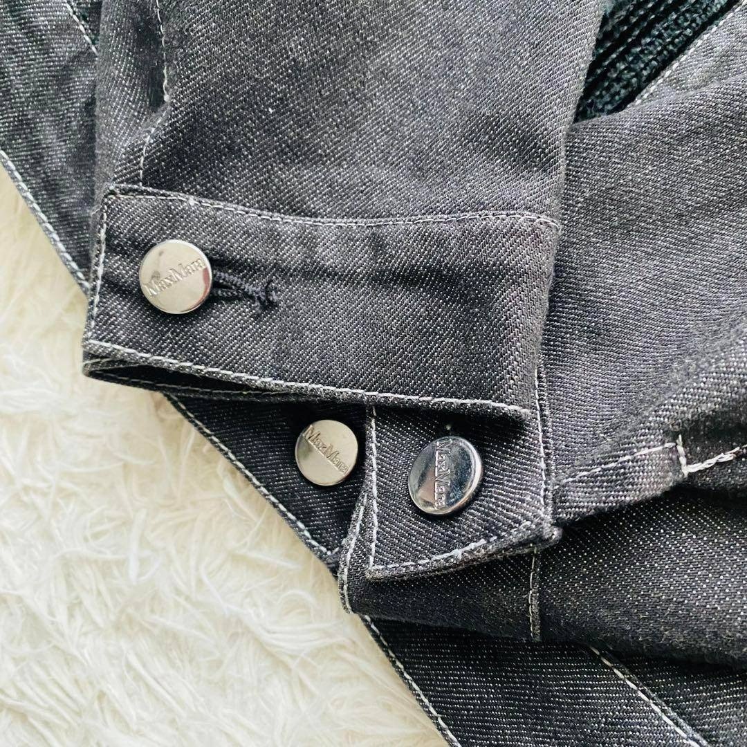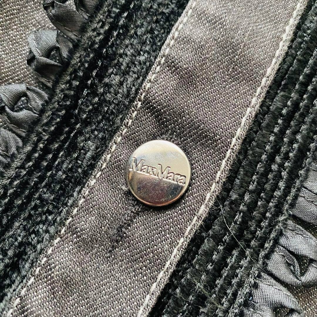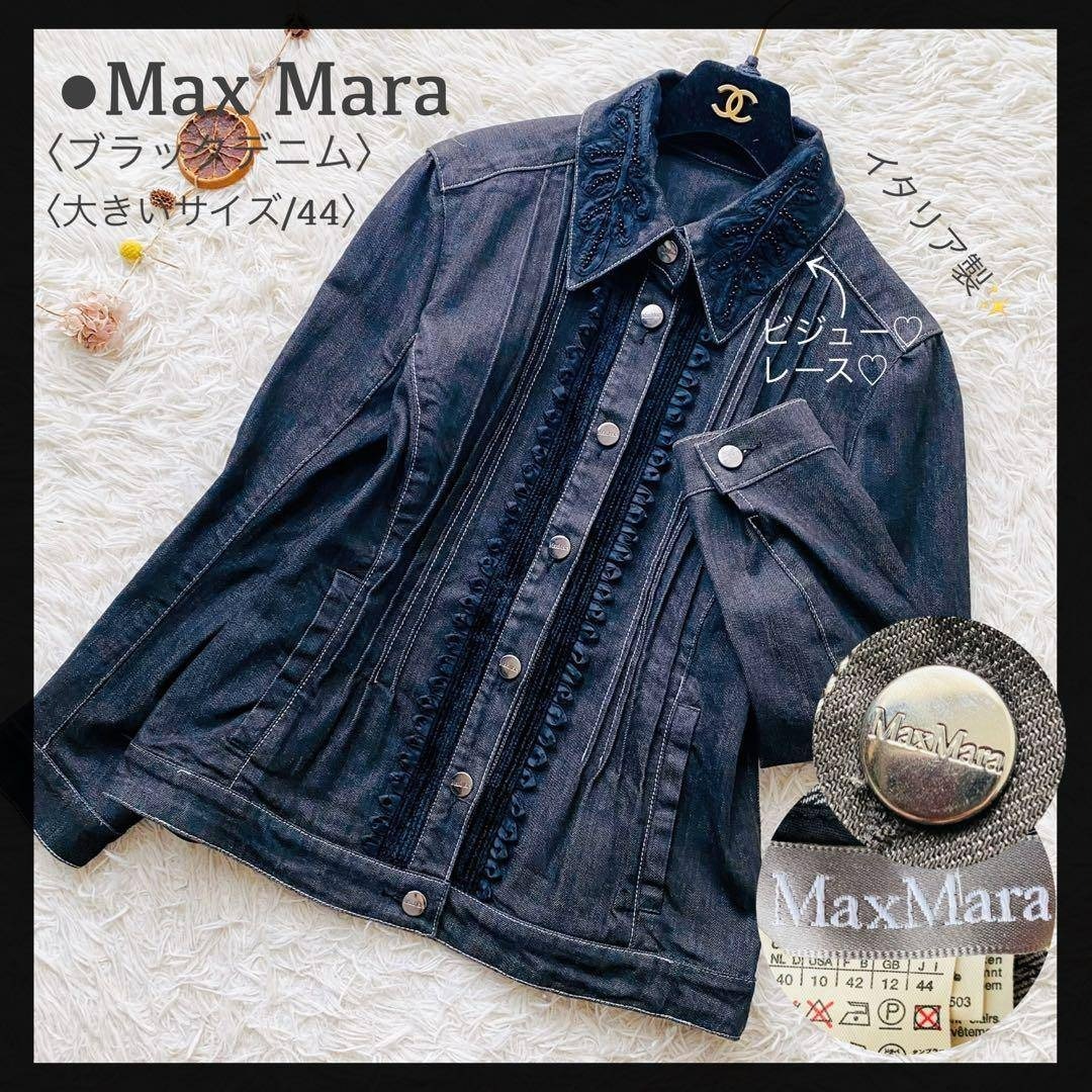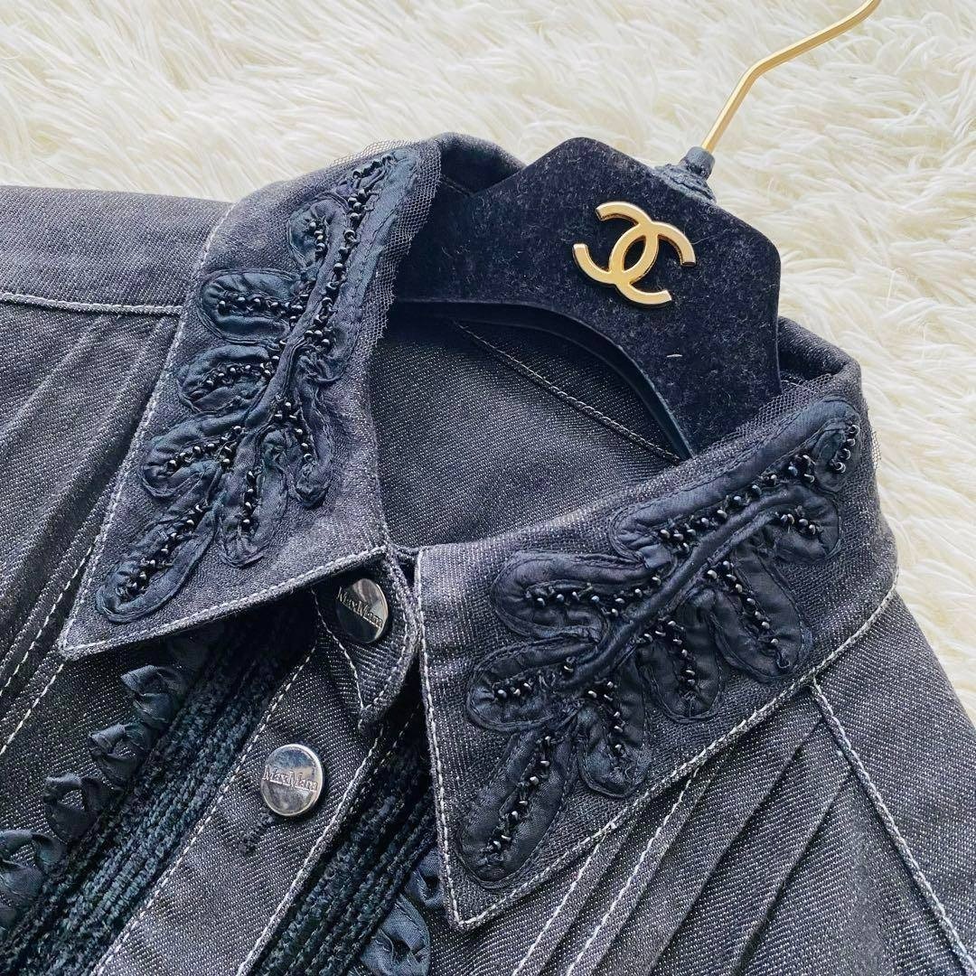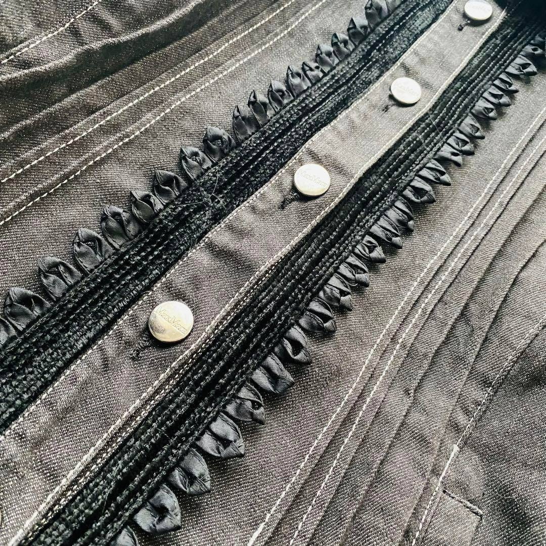 Max Mara マックスマーラ 銀タグ 希少デザイン ビジュー フリル デニムジャケット ブラックデニム 大きいサイズ イタリア製