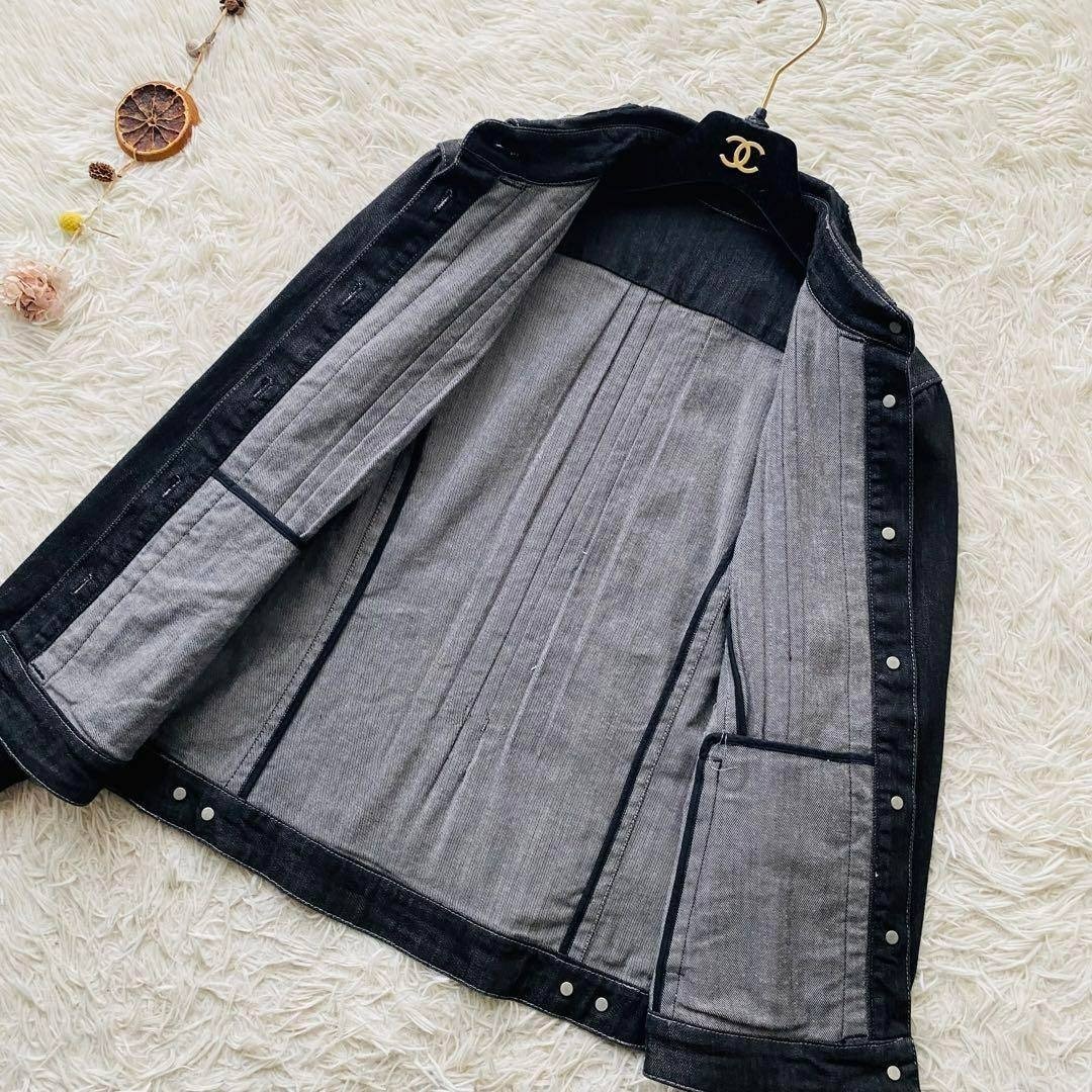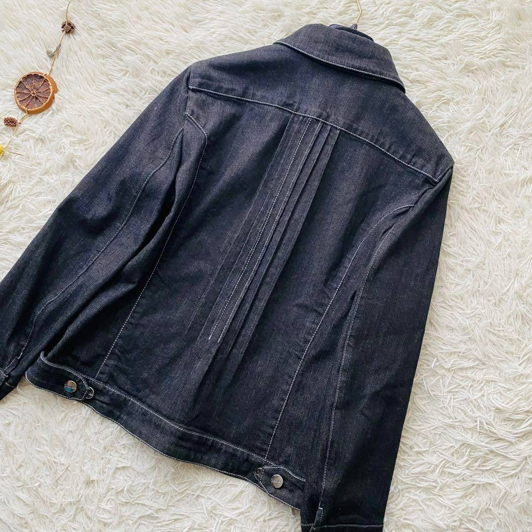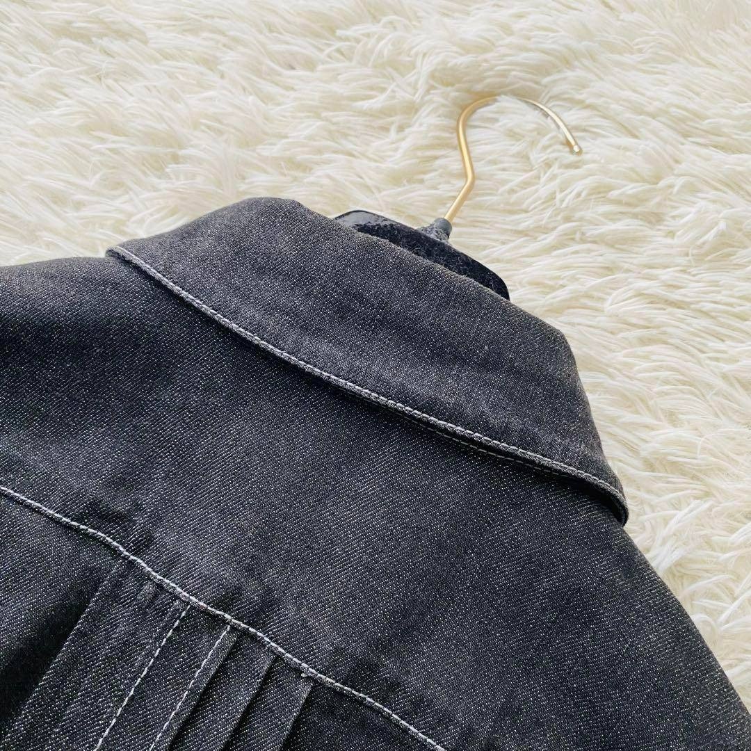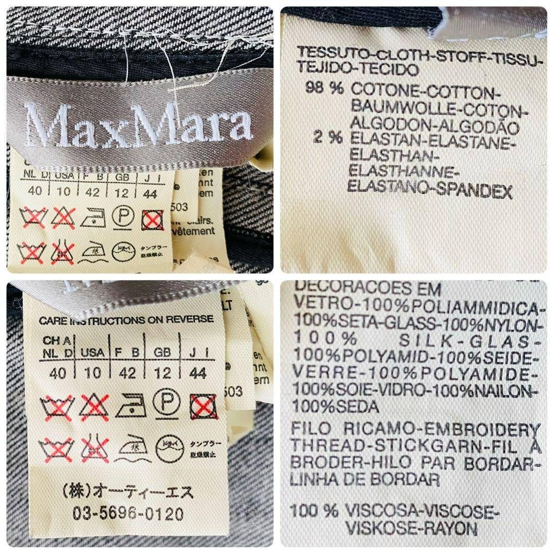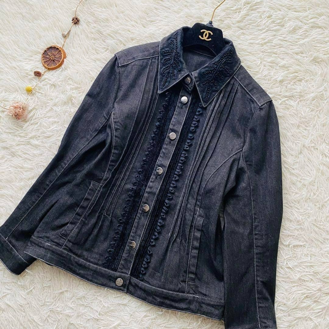 Max Mara マックスマーラ 銀タグ 希少デザイン ビジュー フリル デニムジャケット ブラックデニム 大きいサイズ イタリア製