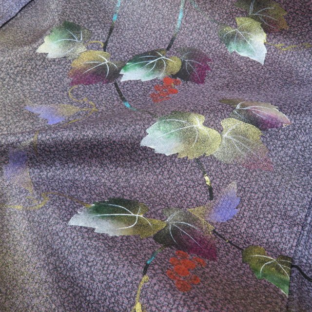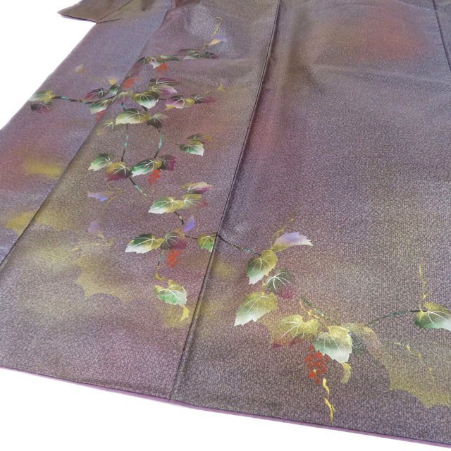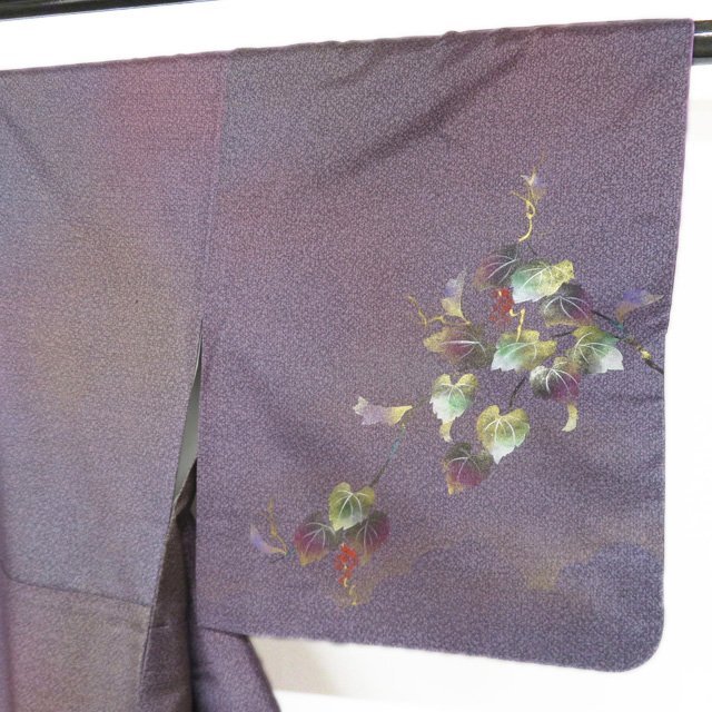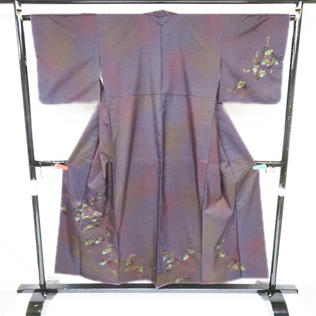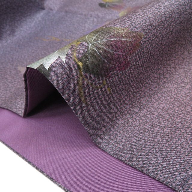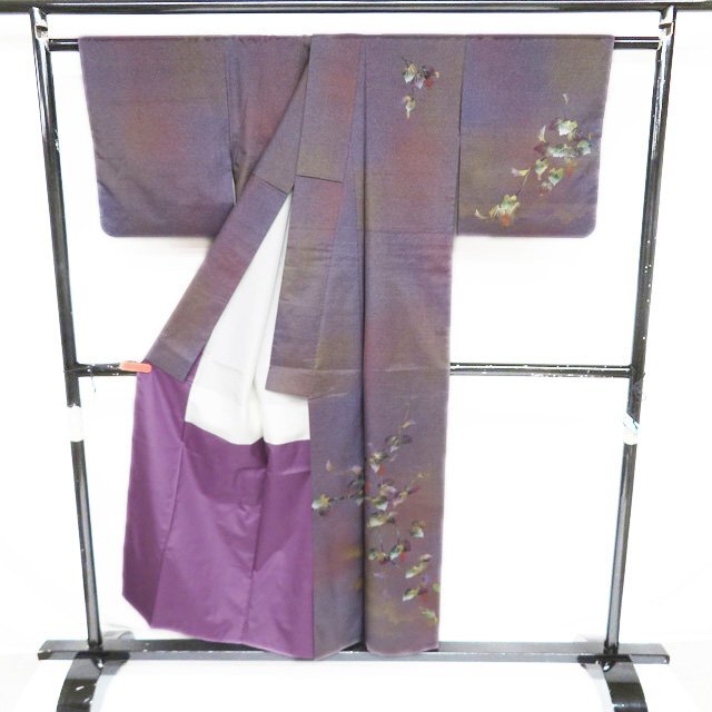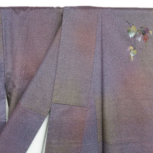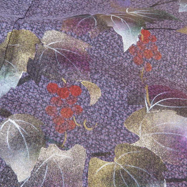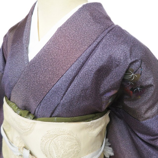 丈152.5cm(+3) 裄64.5cm(+2.5) 袖丈45cm(+3) 前幅24.5cm 後幅30cm ※サイズのお直し、承ります。 (身丈のみ、身幅のみのお直しは承っておりません) ※身丈は肩から測っております。 ※()内は※()内の数字はお直しで直せる長さを示しています。お仕立て直しの場合は胴裏を付け替えるため、さらに長く直せる場合があります。詳しくはお問い合わせください。 単位:cm 素材 正絹 商品ランク B ●着用時期 10~5月(+-2週間) ●着用シーン パーティー、お出掛け、式典(簡易)、観劇・コンサートなど ●お色 紫系色 多色 金 ハリがある生地、シュッシュッと耳心地良い衣擦れの音… 軽やかでさらりとした手触りの、たいへん軽く肌心地の良いこの織りあがりを、是非お手元でもご堪能いただきたく思います。 使用感の少ない、美しいお品物です。 写真に写っている着物のみの販売で帯等の付属品はついておりません。 一部商品は実店舗・他サイトでも並行して販売しておりますので売り切れの際はご了承ください。 その他多数販売中 ya- | ||||||