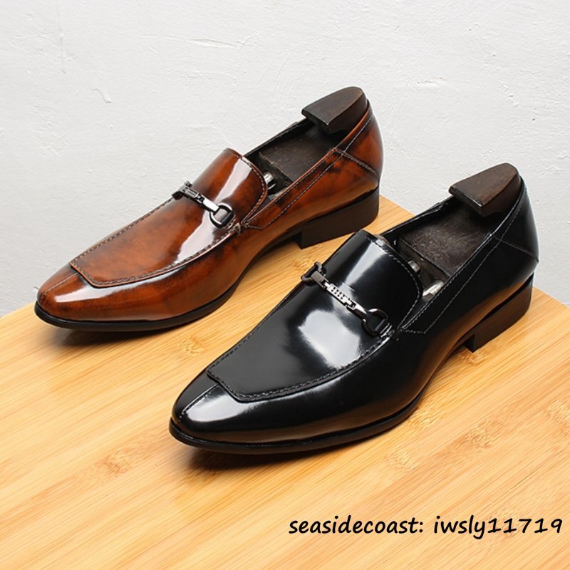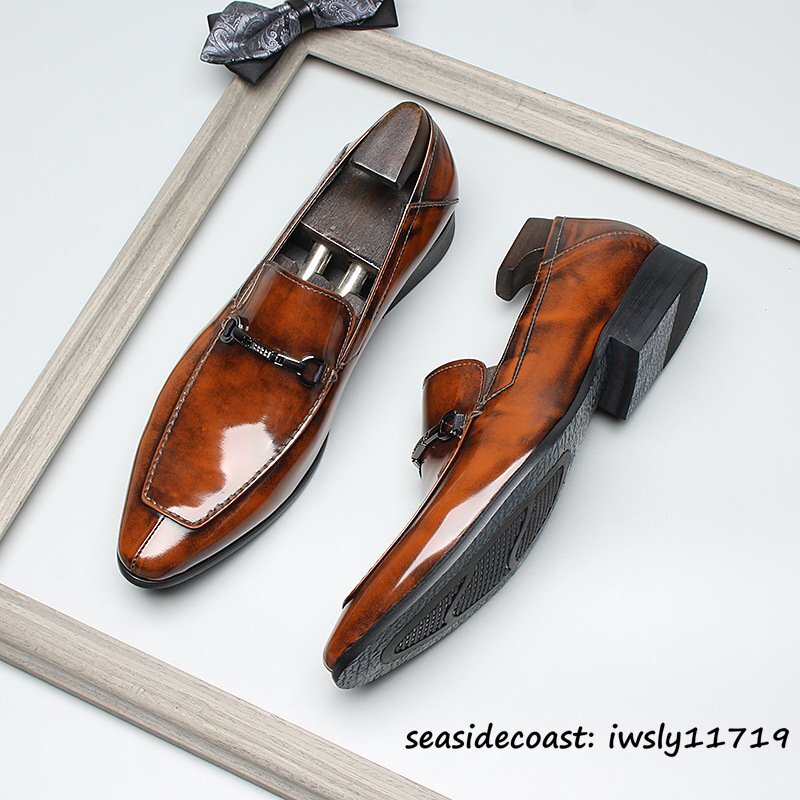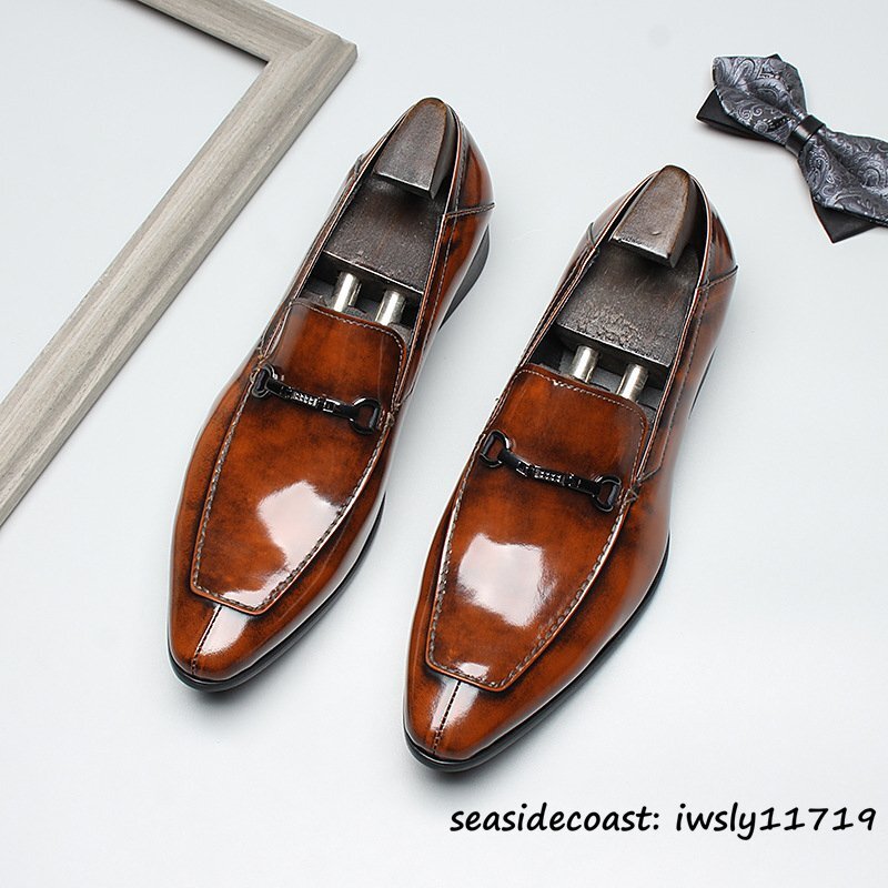 定価9万◆超希少 ビジネスシューズ メンズ 新品 職人手作り 本革レザーシューズ ローファー スリッポン 紳士靴 革靴 高級牛革 赤系 25.5cm