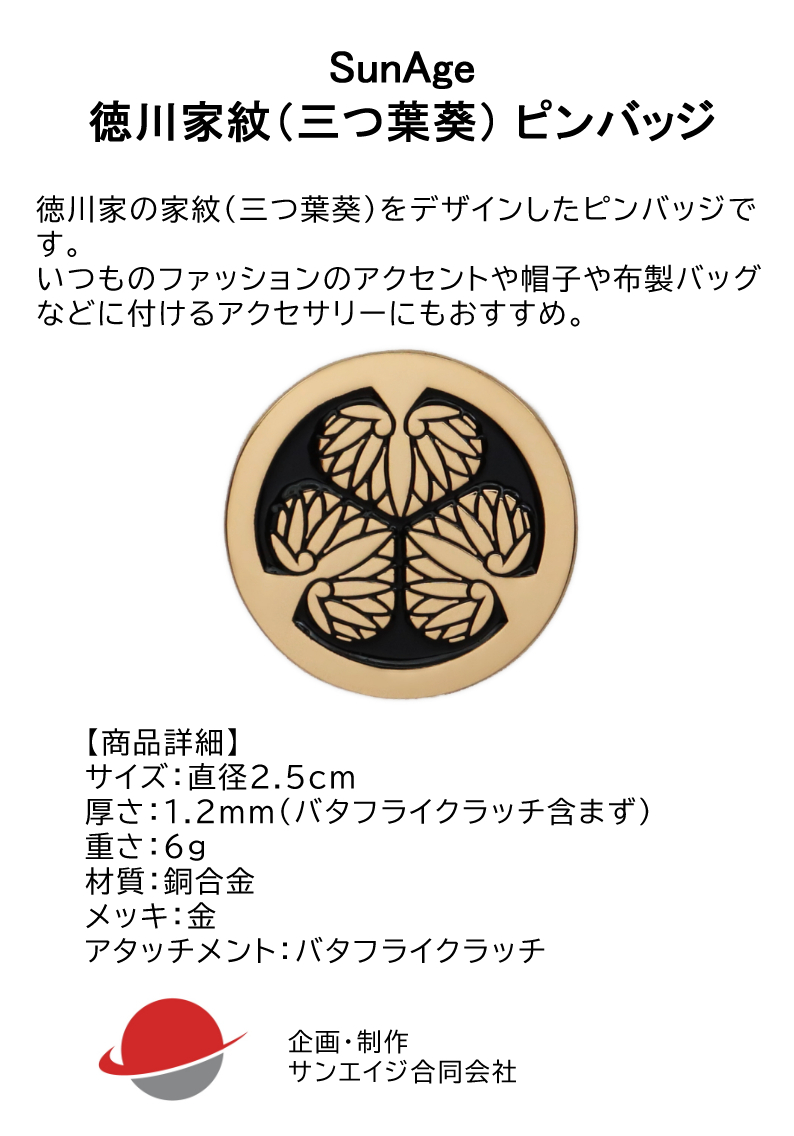 徳川家の家紋(三つ葉葵)をデザインしたピンバッジ(ピンズ)です。