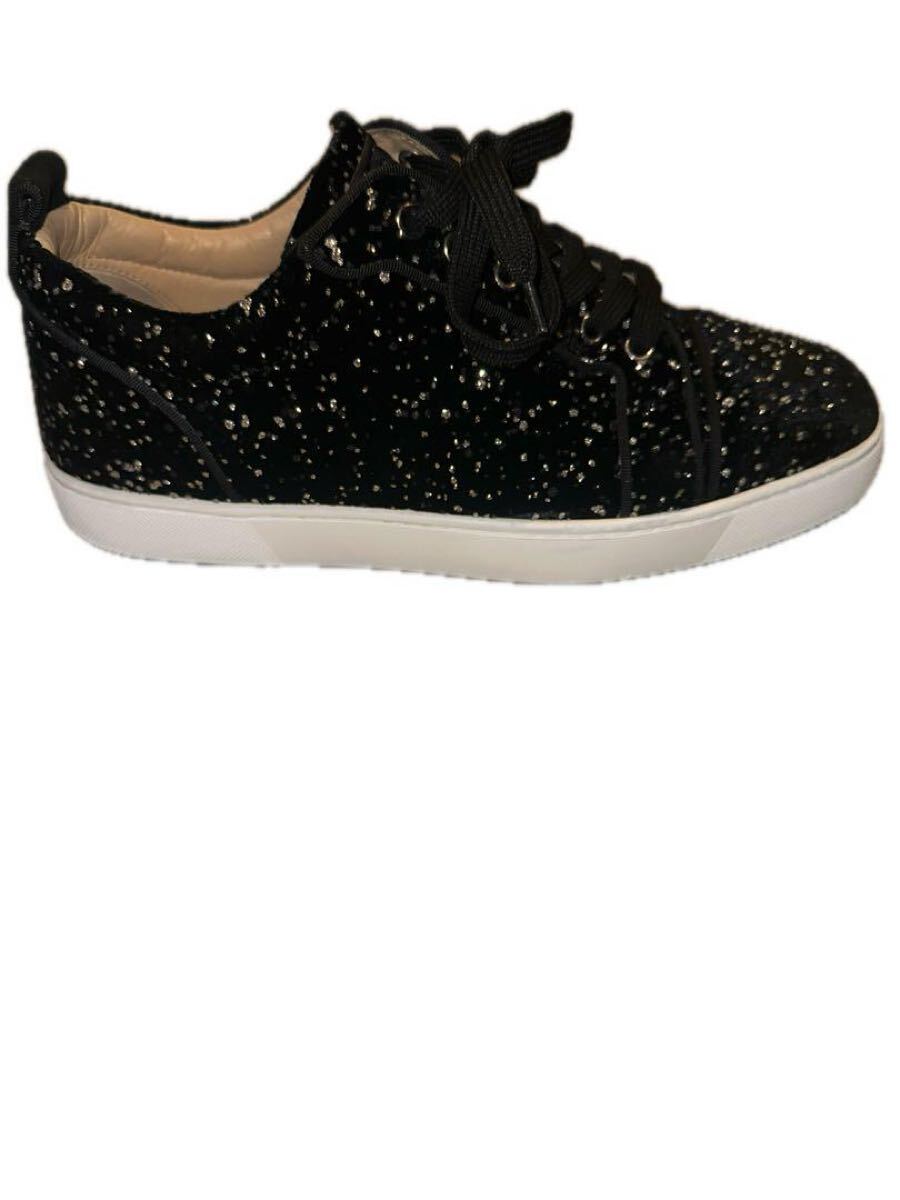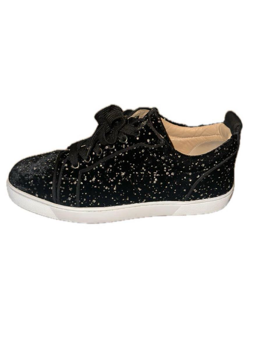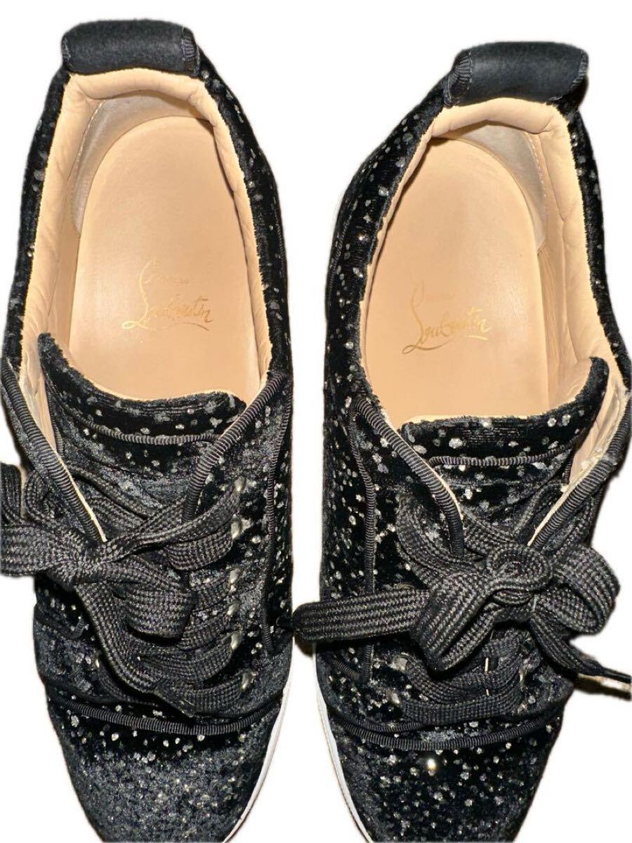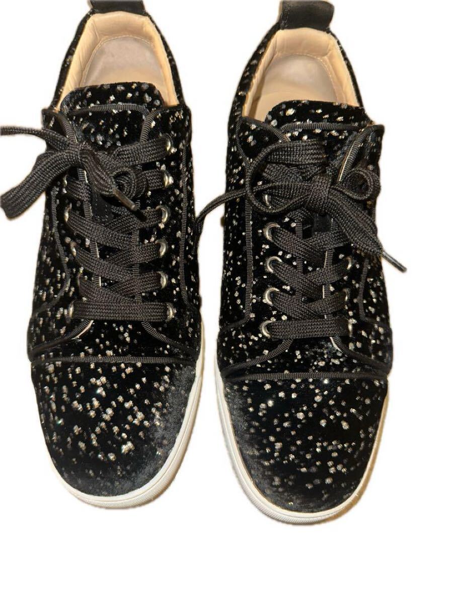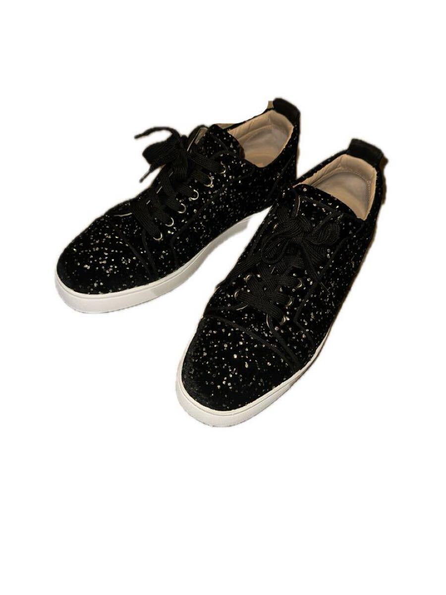 CHRISTIAN LOUBOUTIN LOUIS JUNIOR ORLATO FLAT ベロア グリッター ローカットスニーカー メンズ ビジュー スワロフスキー