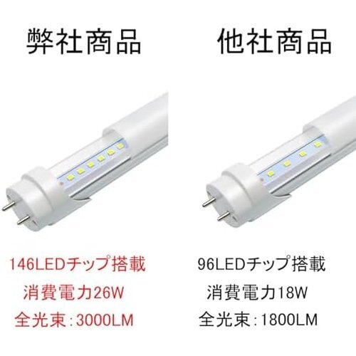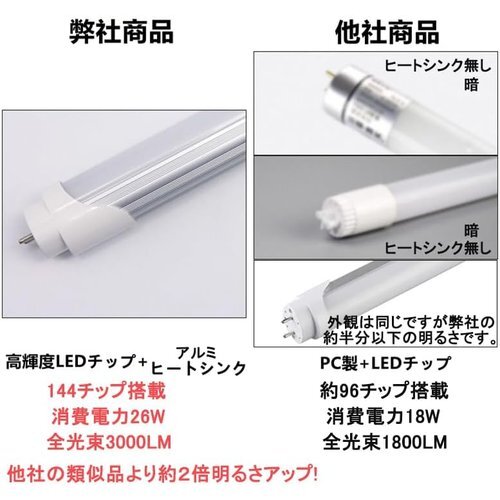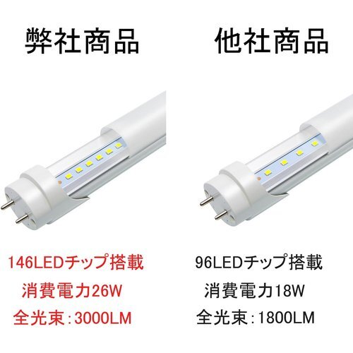 【製品仕様】口金:G13(蛍光灯タイプ)電圧:85V〜25V,5/6Hz消費電力:26W(他社18W)全光束:LMサイズ:最大直径28、最大長さ1199mm色温度:昼光(K)外観:アルミヒートシンク、PC透光カバー照射角:PC材質:29度