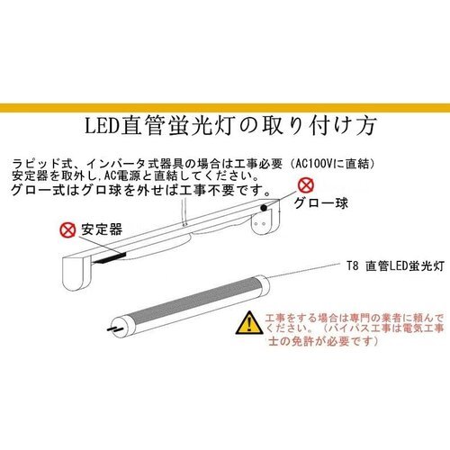 ※使用上の注意・お使いの器具がグロースターター式の場合は、工事不要でグロー球を外すだけで使用できます。直結工事しても使用できます。