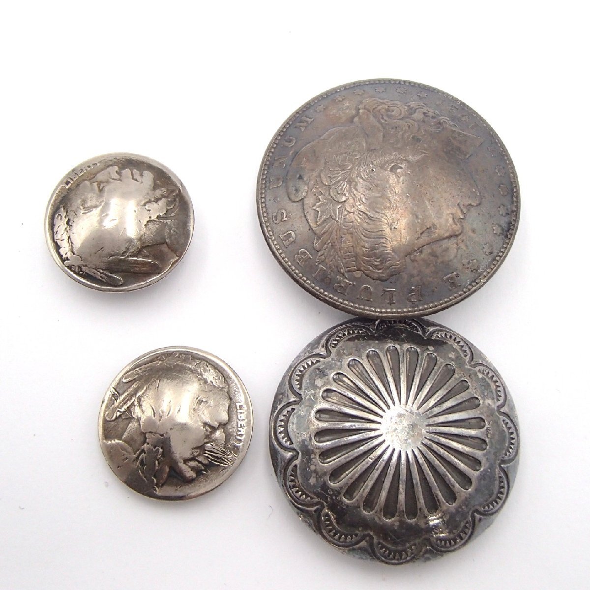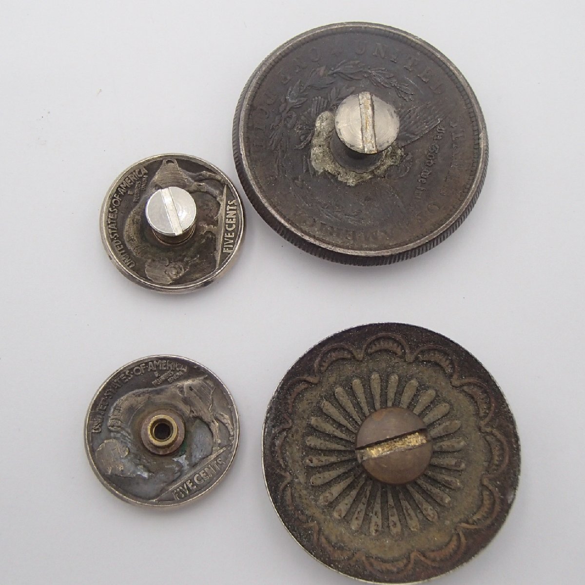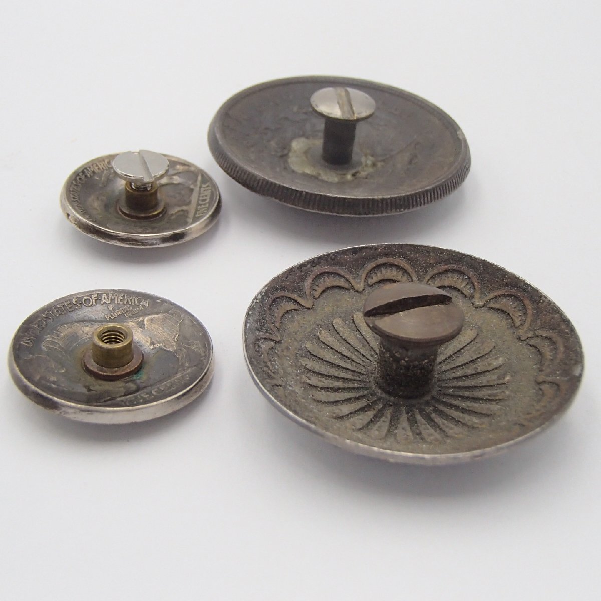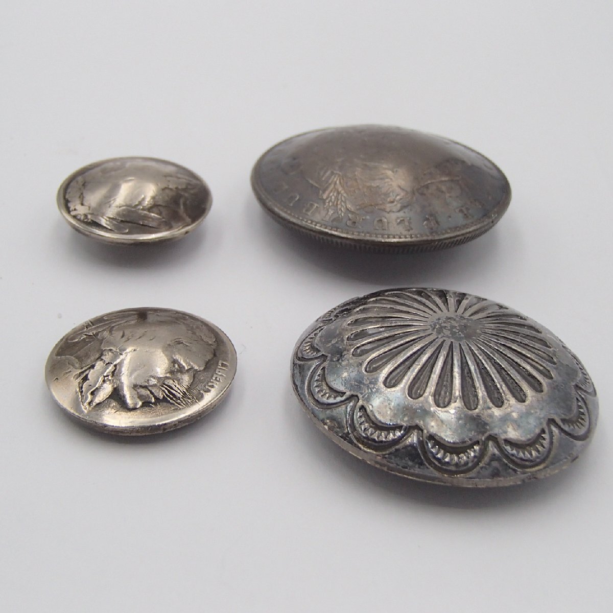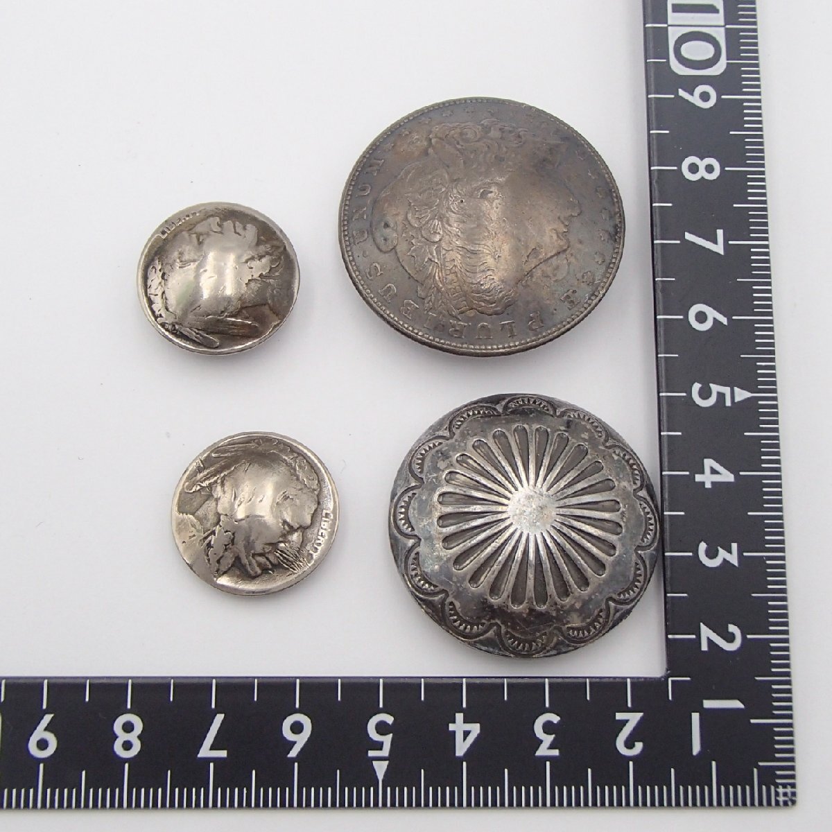 コンチョ 4点 まとめ / ※X線検査1点銀90% そのほか銅 / 銅3点 約20.2g 銀1点 約28.8g / アクセサリー ファッション ボタン