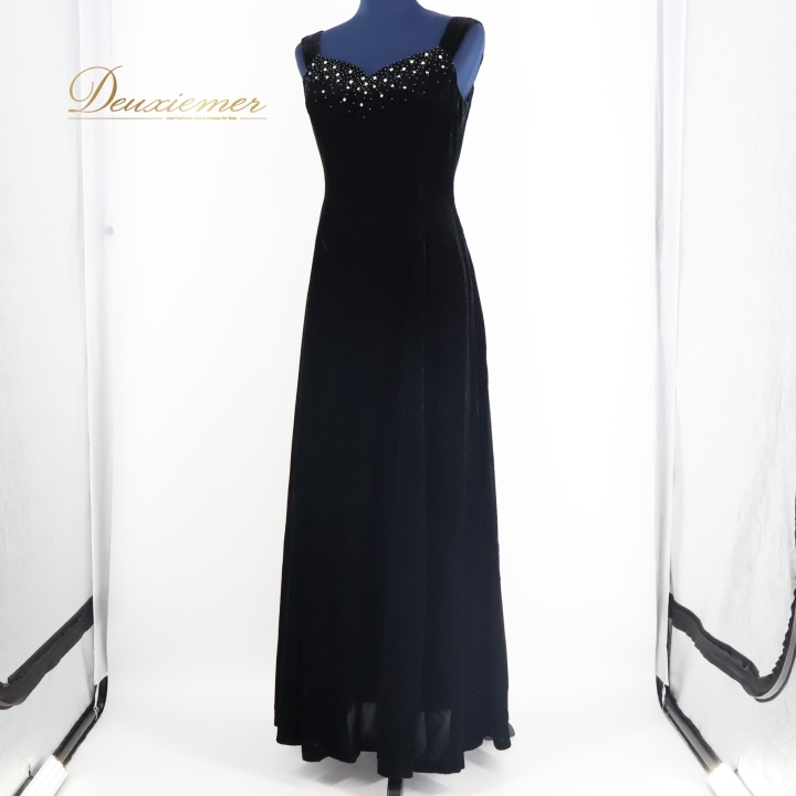 | 【商品名】パーティドレス ワンピースドレス 【サイズ】9号表記 平置き実測:総丈約141cm(裾~肩部まで)、肩幅約32cm、身幅約44cm、ウエスト約35cm ※実測の為、多少の誤差はご了承ください 【仕様】 ・背中ファスナー仕様 ・伸縮性無し ・胸パッド無し ------------------------------------ 【ポイント】 ▽GENETVIVIEN ジュネビビアン 日本製 ▽黒×ベロア生地×ラメ ▽胸元のラインストーン×ビーズがオシャレ ▽パーティ、イベント、二次会、発表会、ダンス等に! ------------------------------------ 【撮影時使用トルソー】 種 類:女性用トルソー9号 (一般的に使用されるサイズです) サイズ:肩幅約37cm、バスト約88cm、ウエスト約66cm、ヒップ約89cm  |