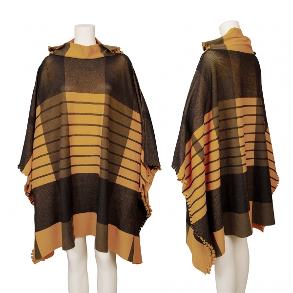 | イッセイミヤケ エーポックISSEY MIYAKE A-POC INSIDE チェックプリントストレッチニットポンチョ 黒茶2 |