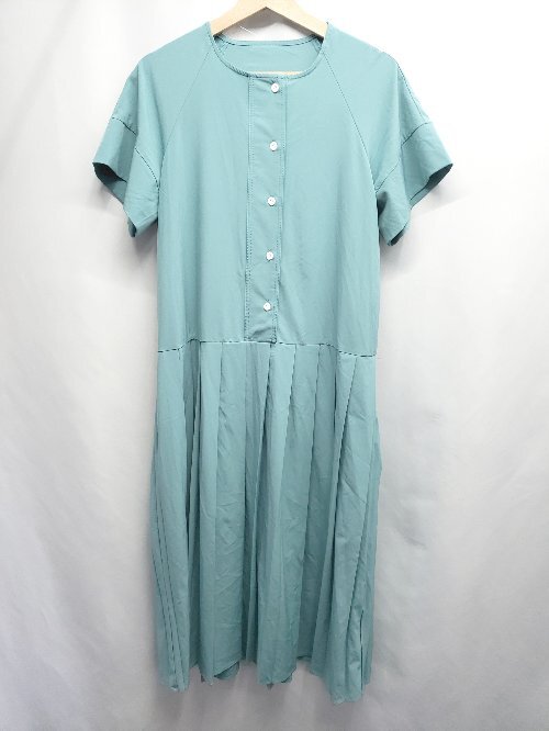 ◇ ⊂ ABITOKYO アビトーキョー プリーツ 半袖 ロング丈 ワンピース サイズF ターコイズグリーン系 レディース E