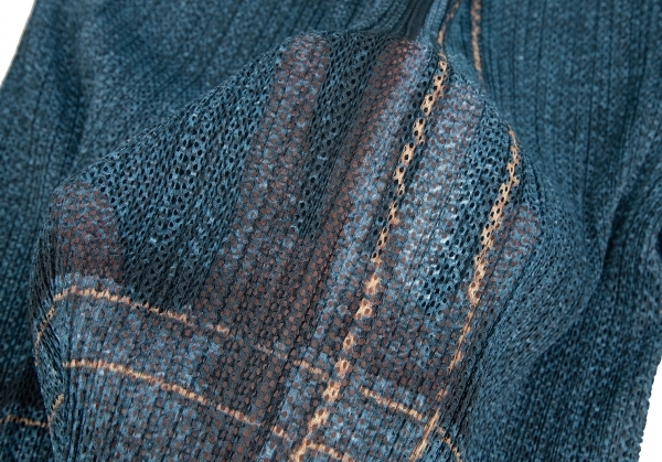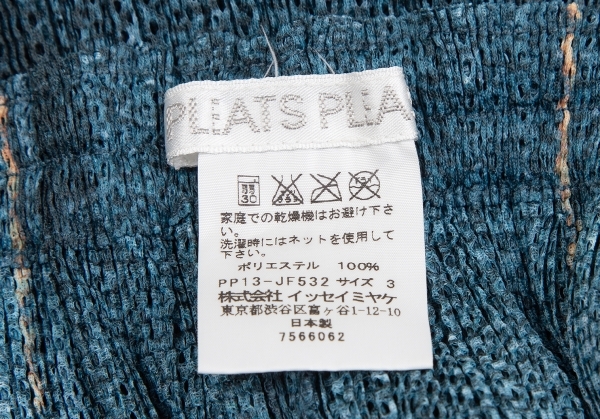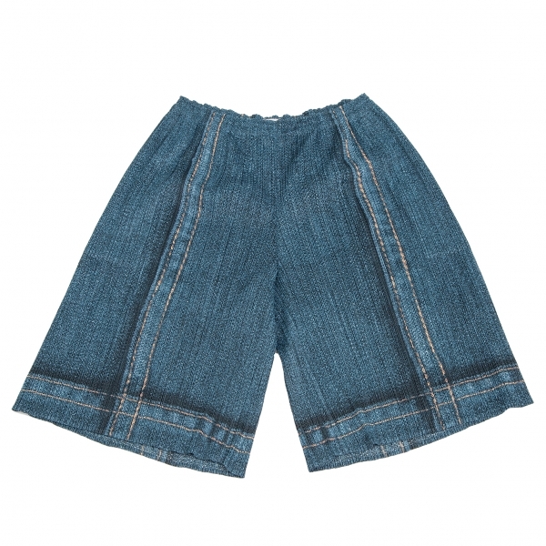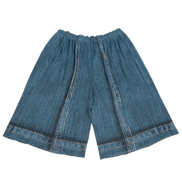 プリーツプリーズPLEATS PLEASE デニムプリントプリーツメッシュハーフパンツ 青3 |