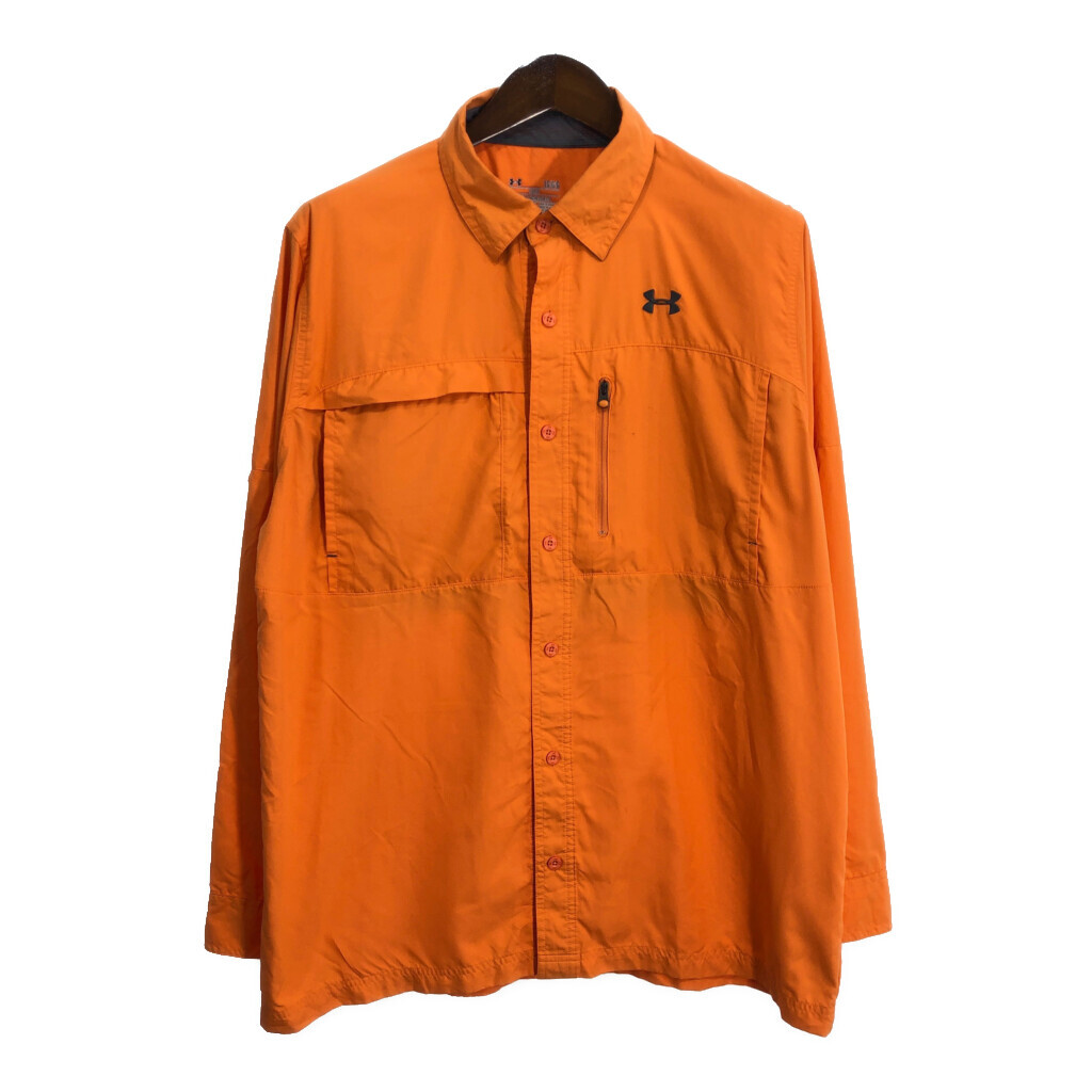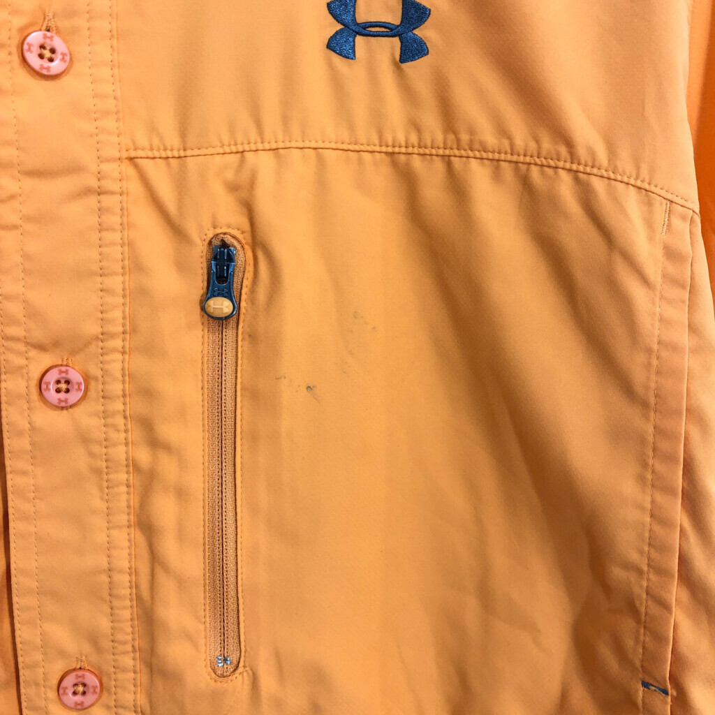 | 【商品管理番号】 R2138 【ブランド】 UNDER ARMOUR/アンダーアーマー 【サイズ】 L 【実寸サイズ】 肩幅:約47cm 着丈:約78cm 身幅:約61cm 袖丈:約64cm 【主な素材】 表地 : ポリエステル 【色】 オレンジ 【仕様】 ボタンダウン スポーツ 【状態】 汚れ:襟、袖、脇、胸、腹部、腰 破れ:背中 | |||