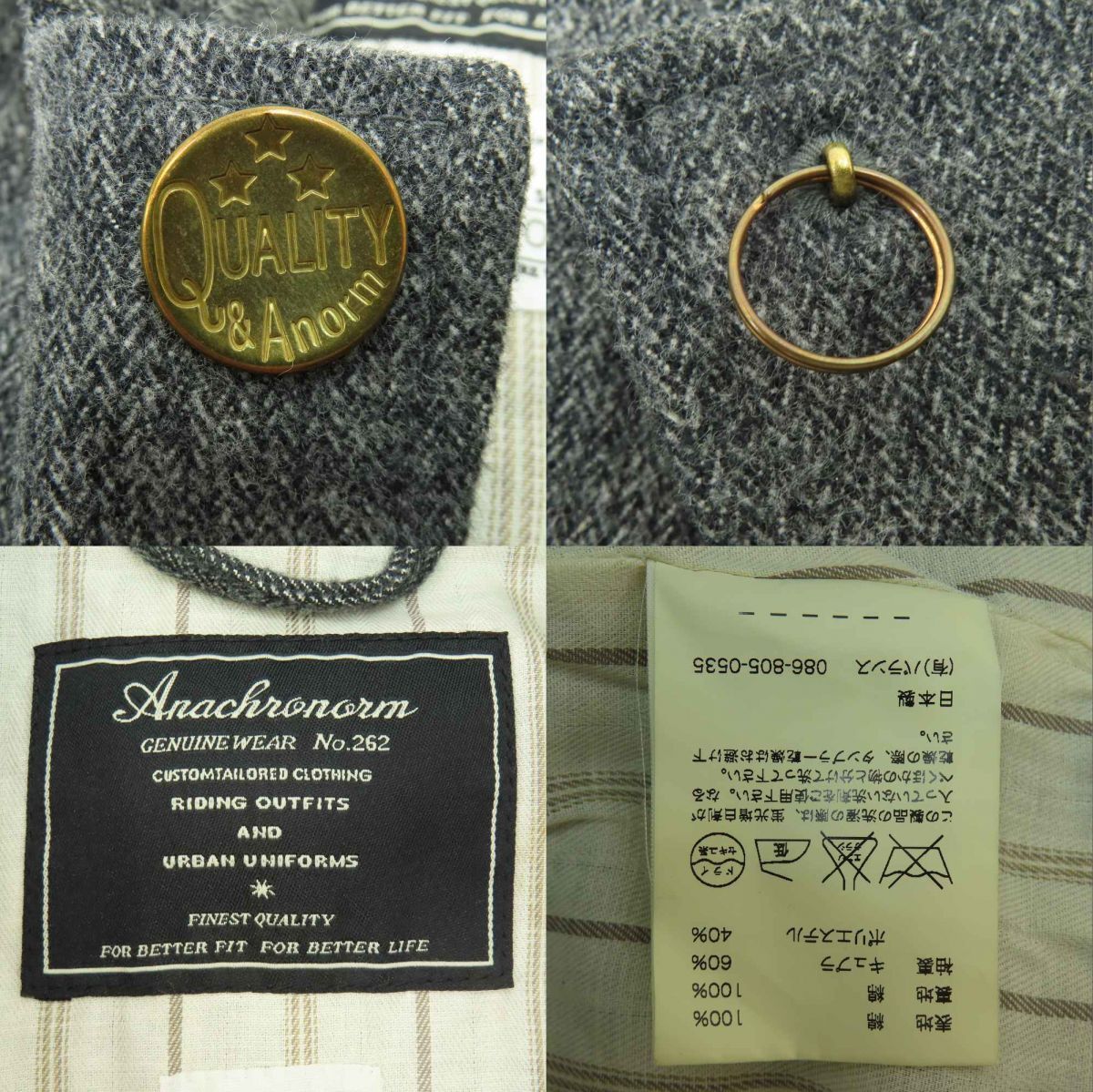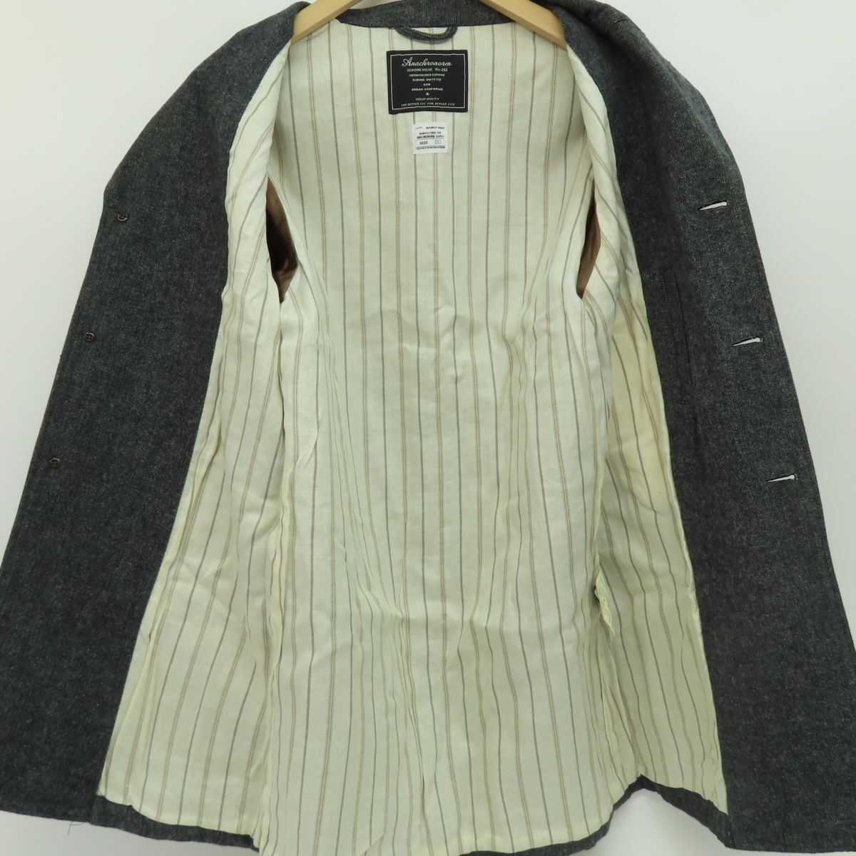 130 ANACHRONORM アナクロノーム ウールカバーオール ジャケット 81-86-805-0535 サイズ:00 ※中古 □内容品:画像にあるもので全てです。 □品番:81-86-805-0535 □カラー:チャコールグレー系 □サイズ 商品表記サイズ:00 【平置き実寸】 着丈約 80cm 身幅約 49cm 肩幅約 37cm 袖丈約 59cm (素人採寸の為、多少の誤差はご了承ください。) 【 サイズガイドはこちら 】 □状態 ・所々に汚れ等全体的に着用感が見受けられます。 ※クリーニングが必要な場合は購入者様でご対応ください。 ※モニターの環境により実物と画像の色が違うように見える場合があります。 ※画像では判別しづらいUSED品特有の薄い汚れや薄いキズ、細かいキズなどある場合があります。 |