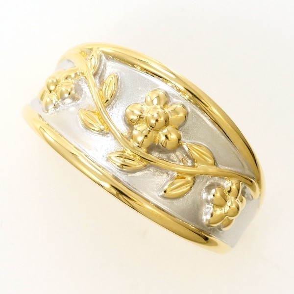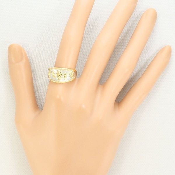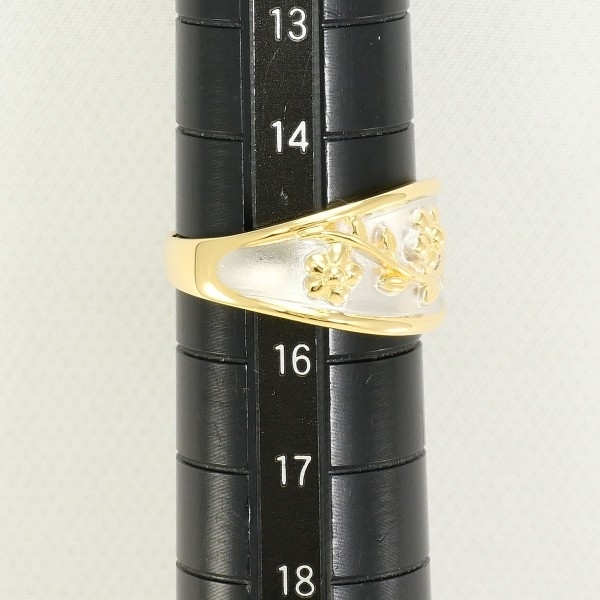 【素材】 K18/イエローゴールド ホワイトゴールド 【総重量】 約6.0g 【サイズ】 約15号 【最大幅】 約11mm 【サイズ直し】 不可 【付属品】 なし 【商品の状態】 新品仕上げ済み 花(フラワー)のモチーフです | |