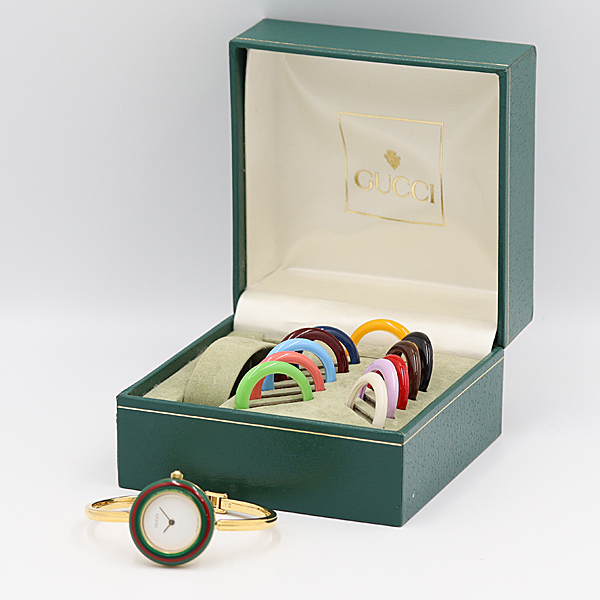 デッドストック級 箱付 グッチ 11/12.2 チェンジベゼル シェリーライン QZ バングルウォッチ レディース腕時計 NSY14339ABC 0158400 10BGT
