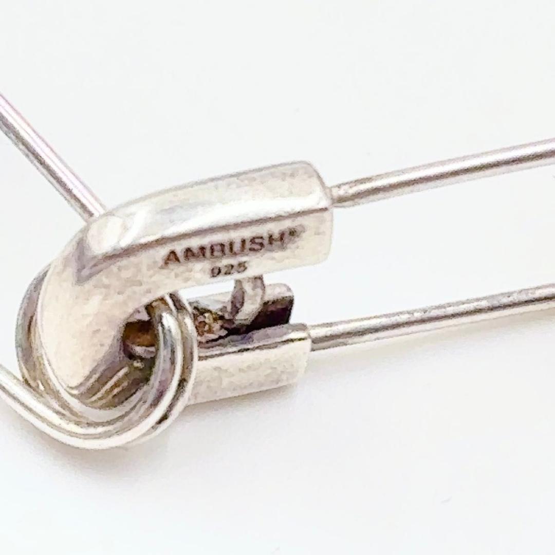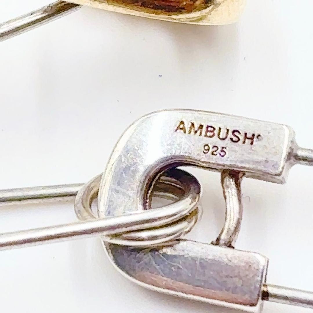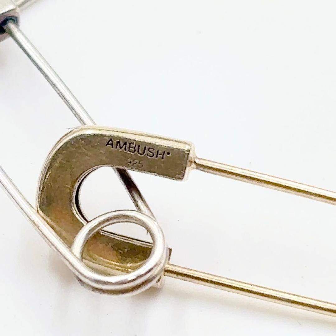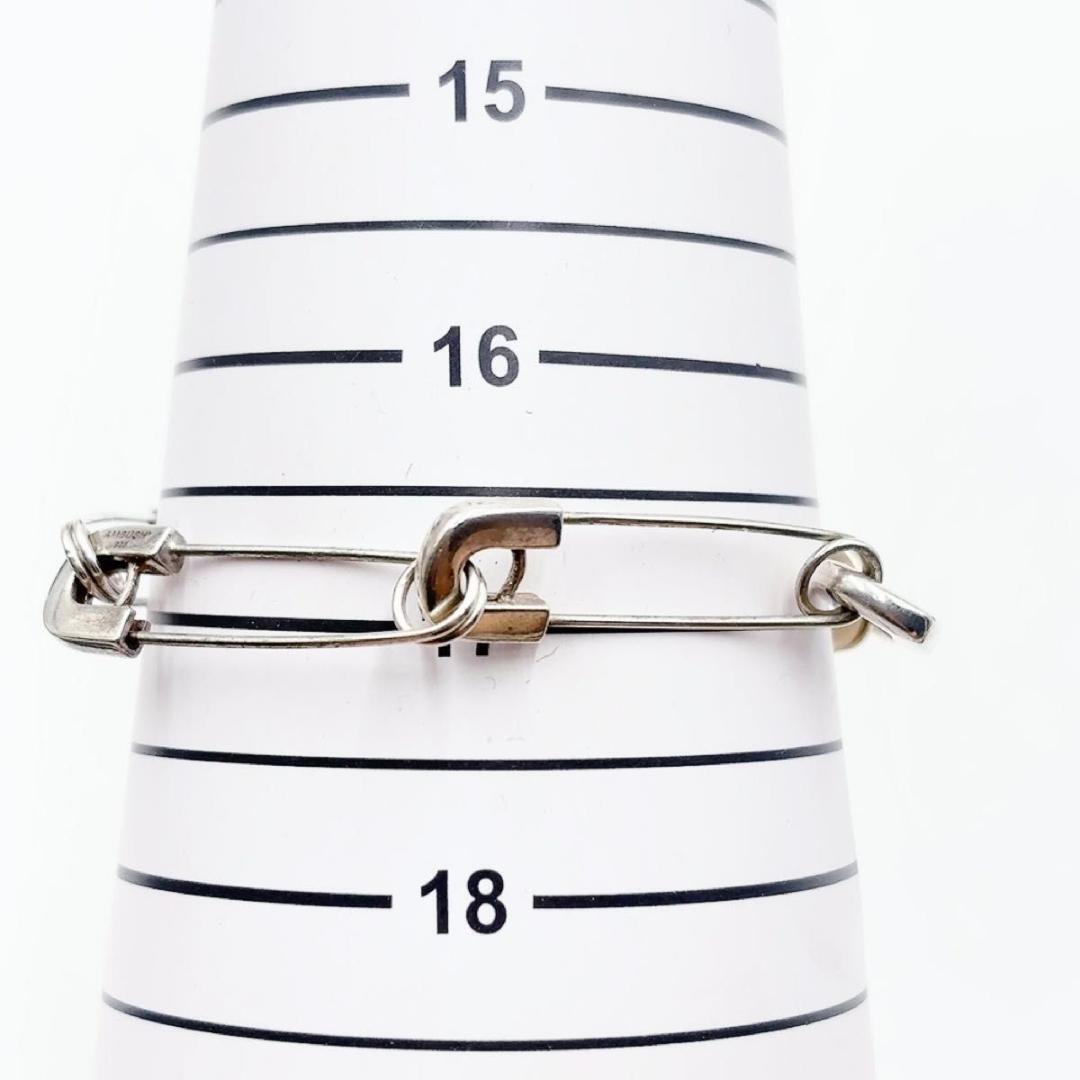 AMBUSH の SS22 コレクションの一部であるこのブレスレットは、目を引くステートメント ピースを形成しています。 シルバートーンのデザインは、シルバートーンの安全ピンで作られたチェーンリンクと、コントラストのあるゴールドトーンの安全ピンが追加されたステートメントを特徴としています。